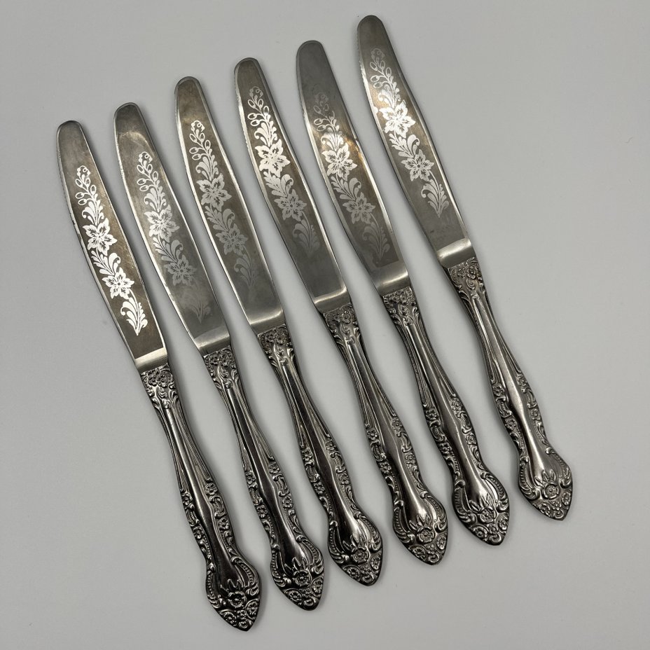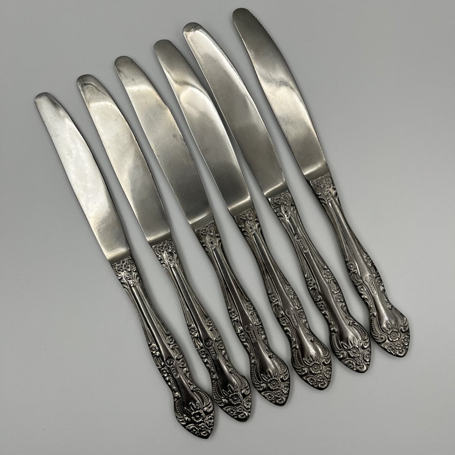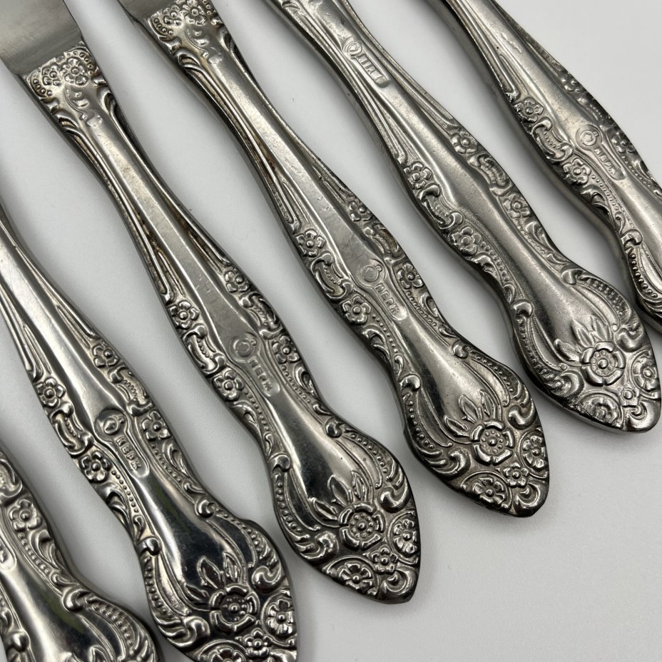 купить Набор из 6 столовых ножей, украшенных растительным декором, нержавеющая сталь, Павловский завод художественных металлоизделий им. С.М. Кирова, СССР, 1970-1990 гг.