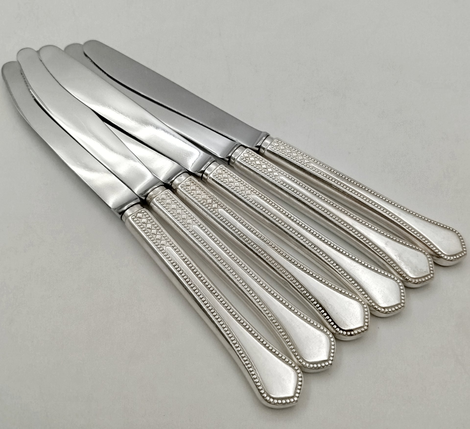 Набор из шести ножей с четырехгранными ручками, "M. Bernard & Co / Duracut”, сталь, латунь, серебрение, Великобритания, 1930-1950 гг.