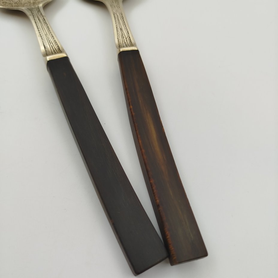 Ложки салатные, украшенные растительным декором, латунь, дерево, резьба, Индия, 1980-2000 гг.