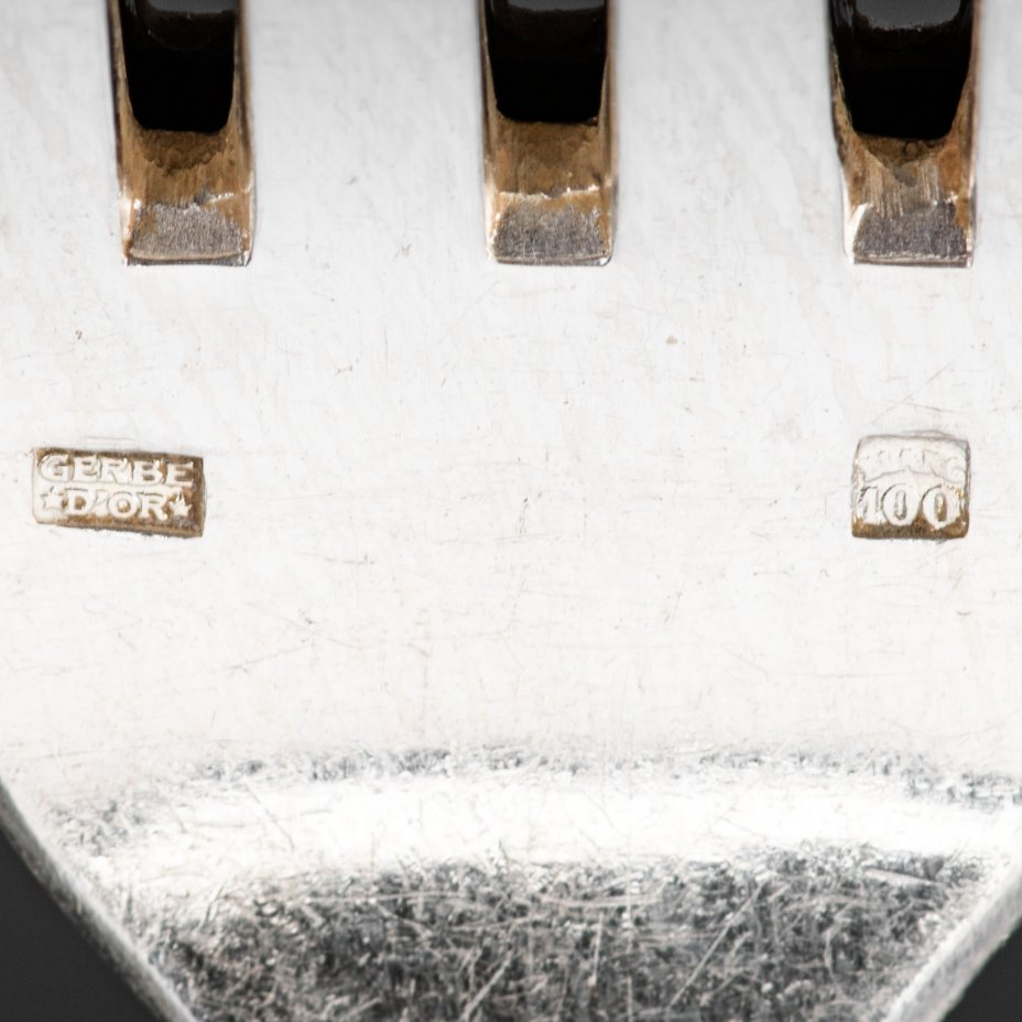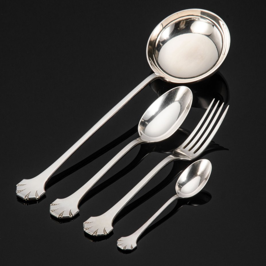 Набор столовых приборов на 12 персон (37 предметов) в оригинальной коробке, латунь, серебрение, Западная Европа, 1950-1970 гг.