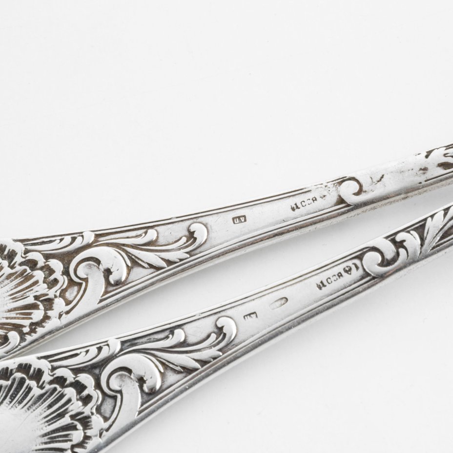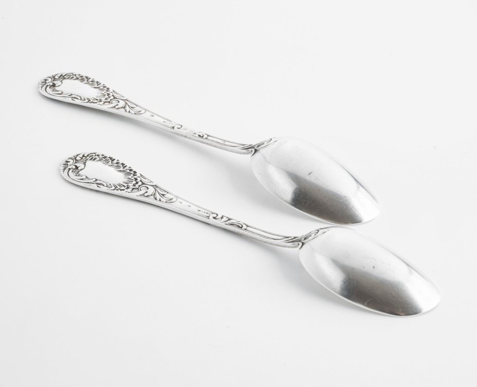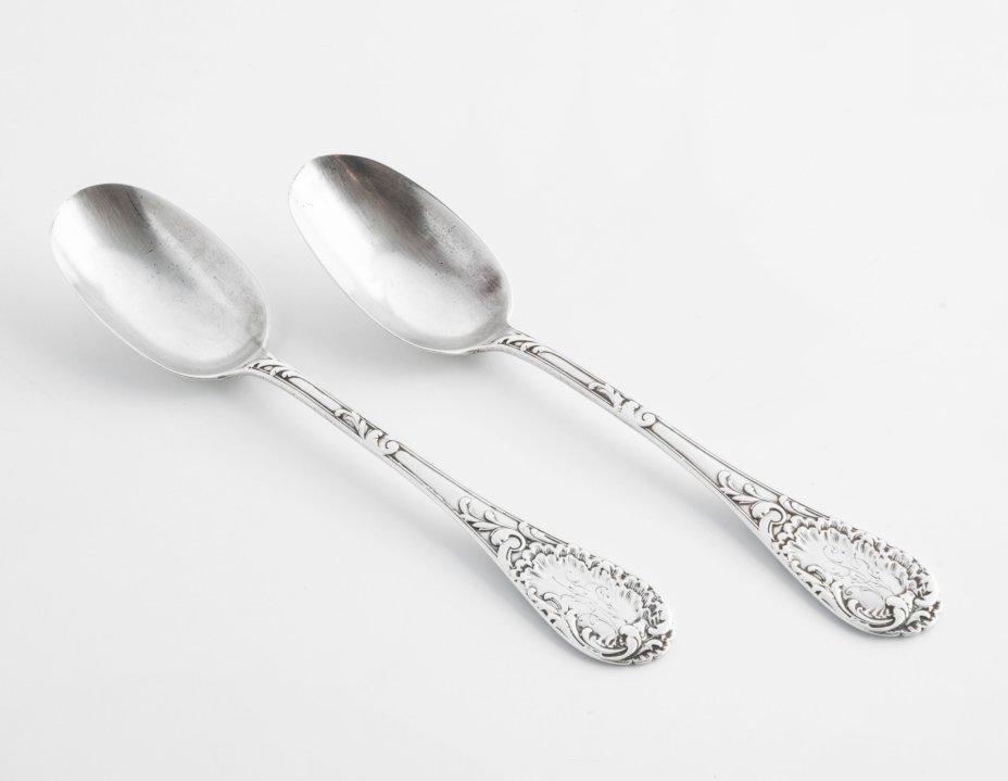 Набор ложек на 2 персоны, украшенных растительным декором и монограммами "МТ" и "МВ", металл, Германия, 1888-1920 гг.