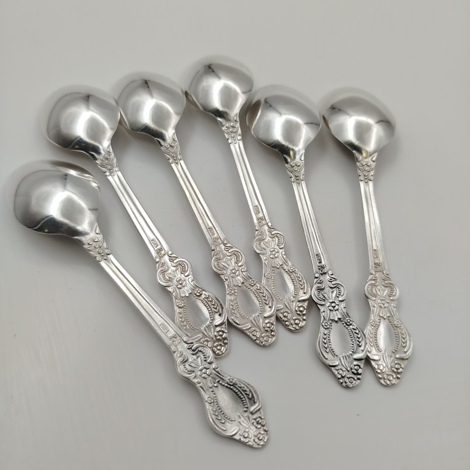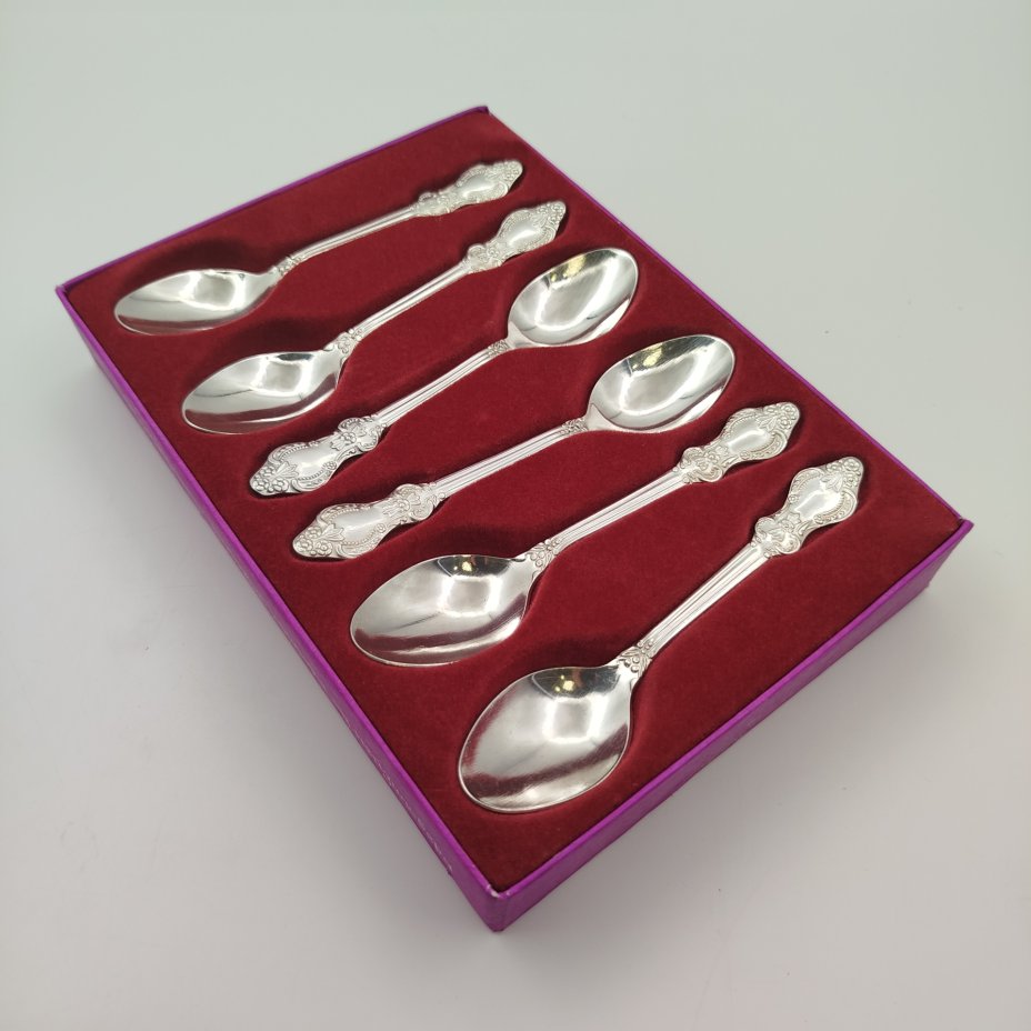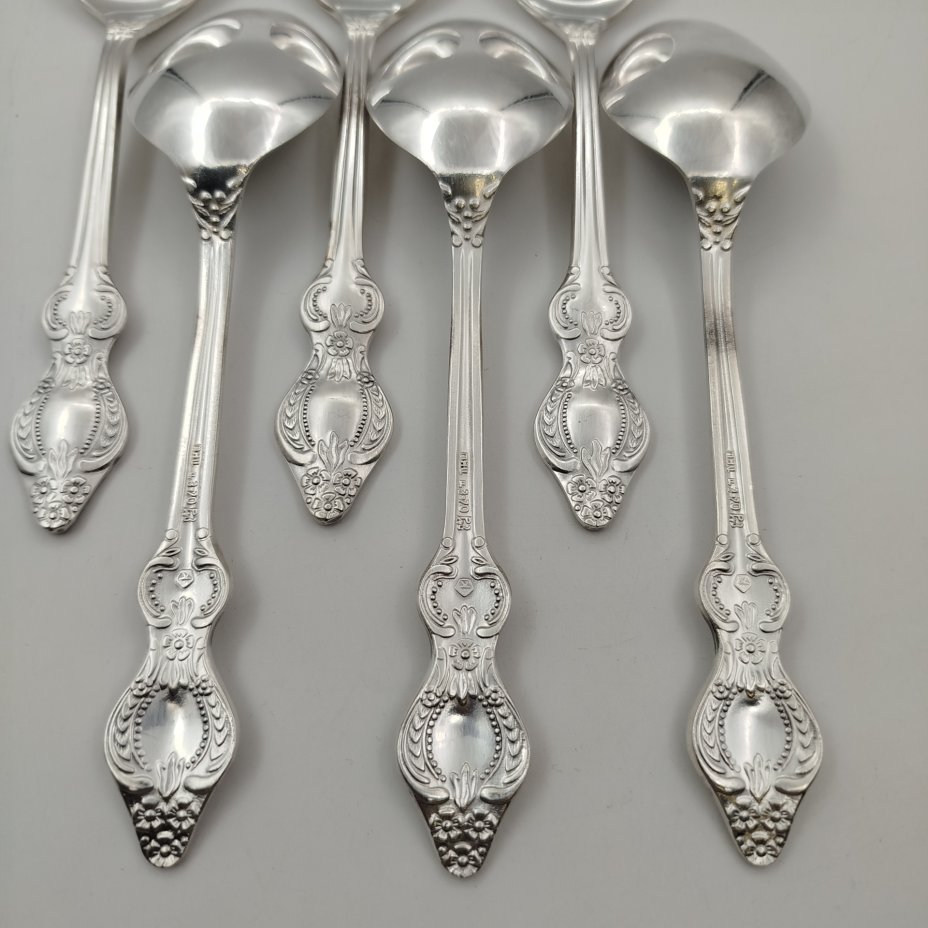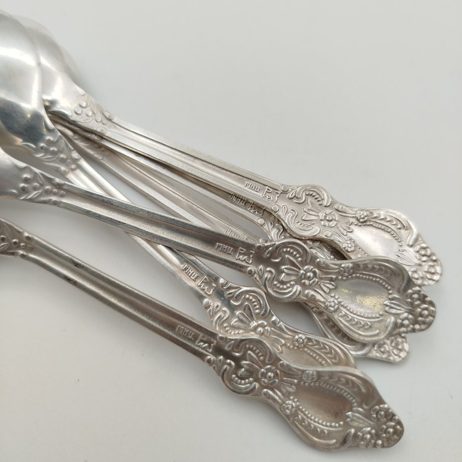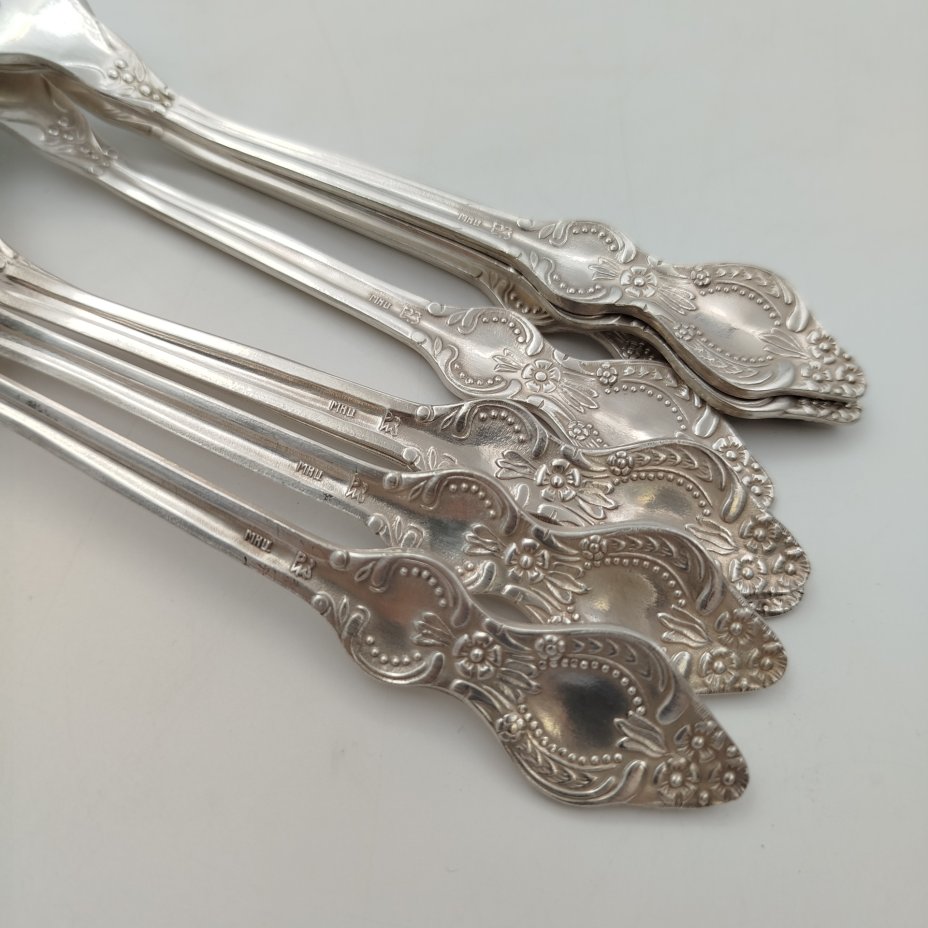Набор чайных ложек на 6 персон, украшенных орнаментальным декором, мельхиор, серебрение, Режевский механический завод, г. Реж, СССР, 1970-1990 гг.