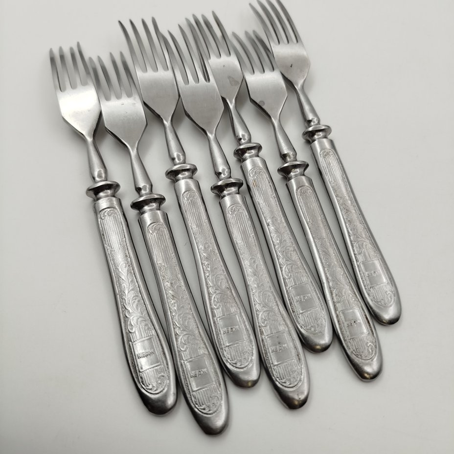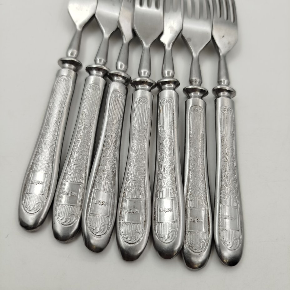 Набор из 7-ми вилок с растительным декором, нержавеющая сталь, Артель «Звезда», Беляйково, СССР, 1960-1980 гг.