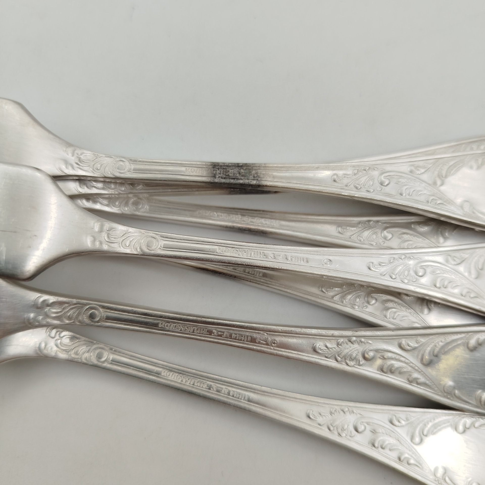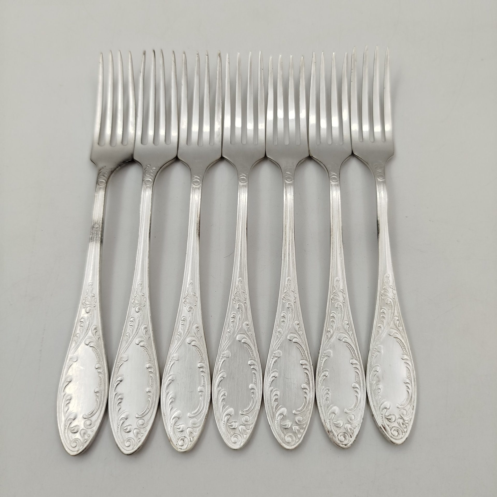 Набор из семи десертных вилок "Пламя", мНЦ (медь-никель-цинк), Кольчугинский завод цветных металлов, СССР, 1960-1990 гг.