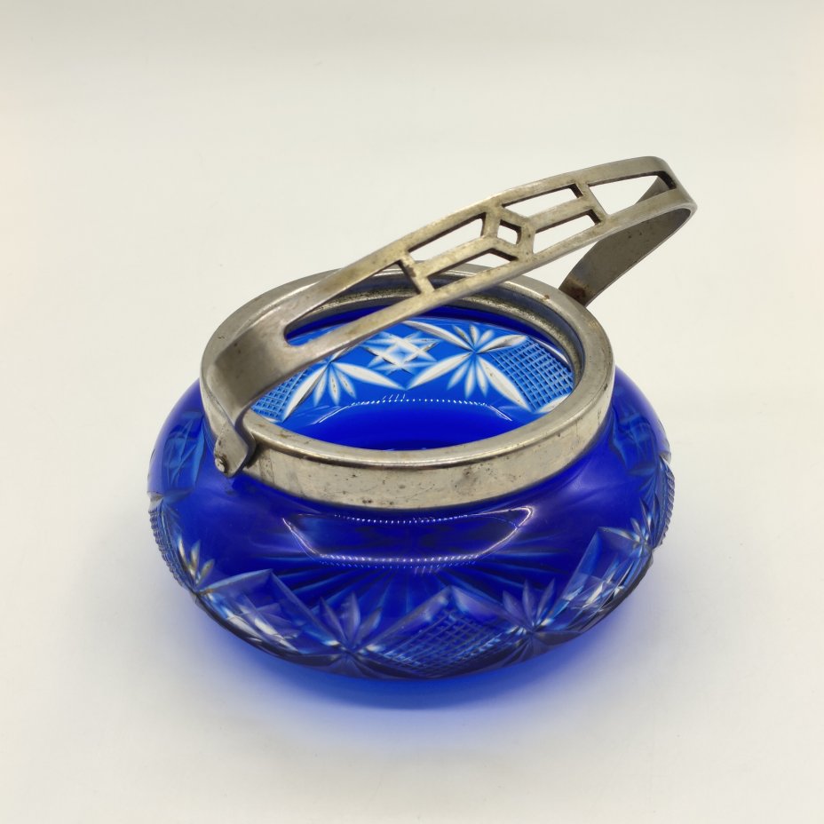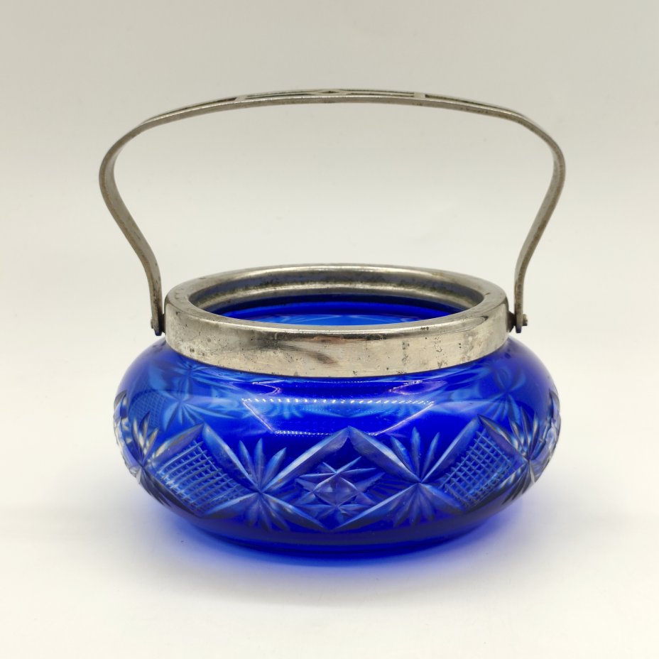 Сахарница с ручкой, металл, кобальтовое стекло, алмазная нрань, Завод "УМП Автоштамп", СССР, 1950-1970 гг.