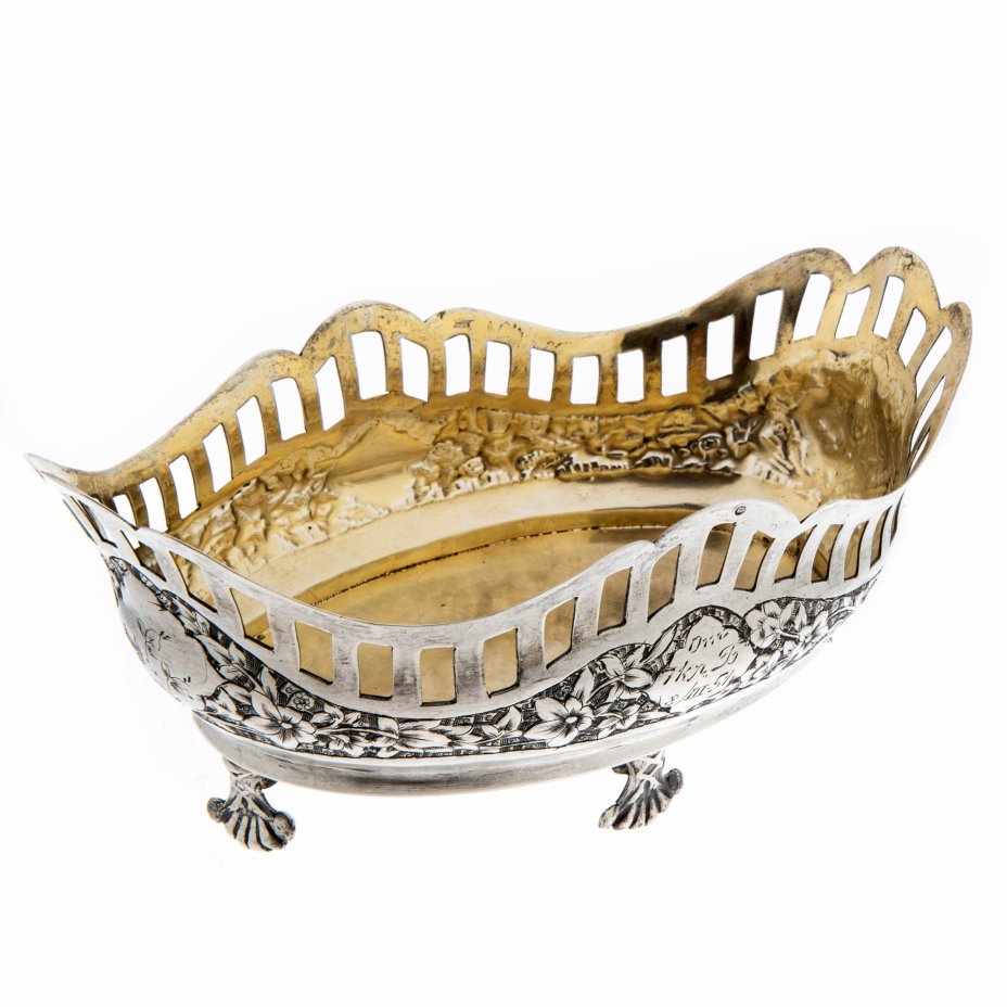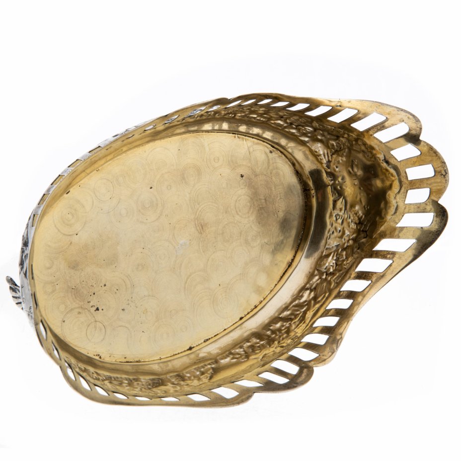 Конфетница с цветочным декором по тулову и прорезным бортом, металл, золочение, Западная Европа, 1890-1920 гг.