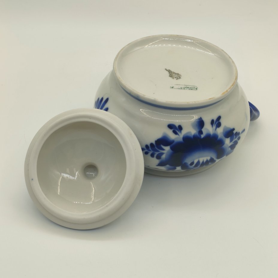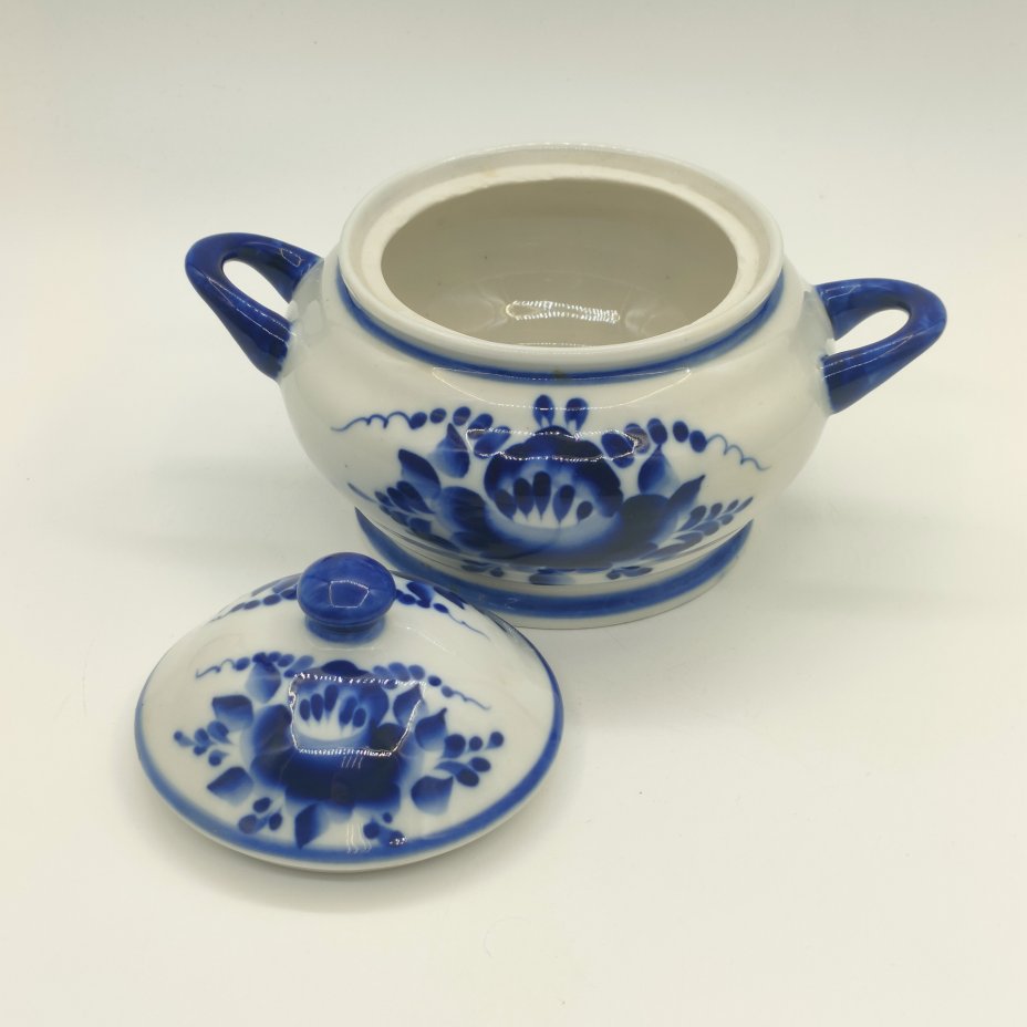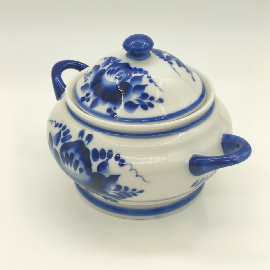 Сахарница (ёмкость для хранения) с цветочным декором, фарфор, роспись, Гжельский фарфоровый завод, Россия, 1990-2015 гг.