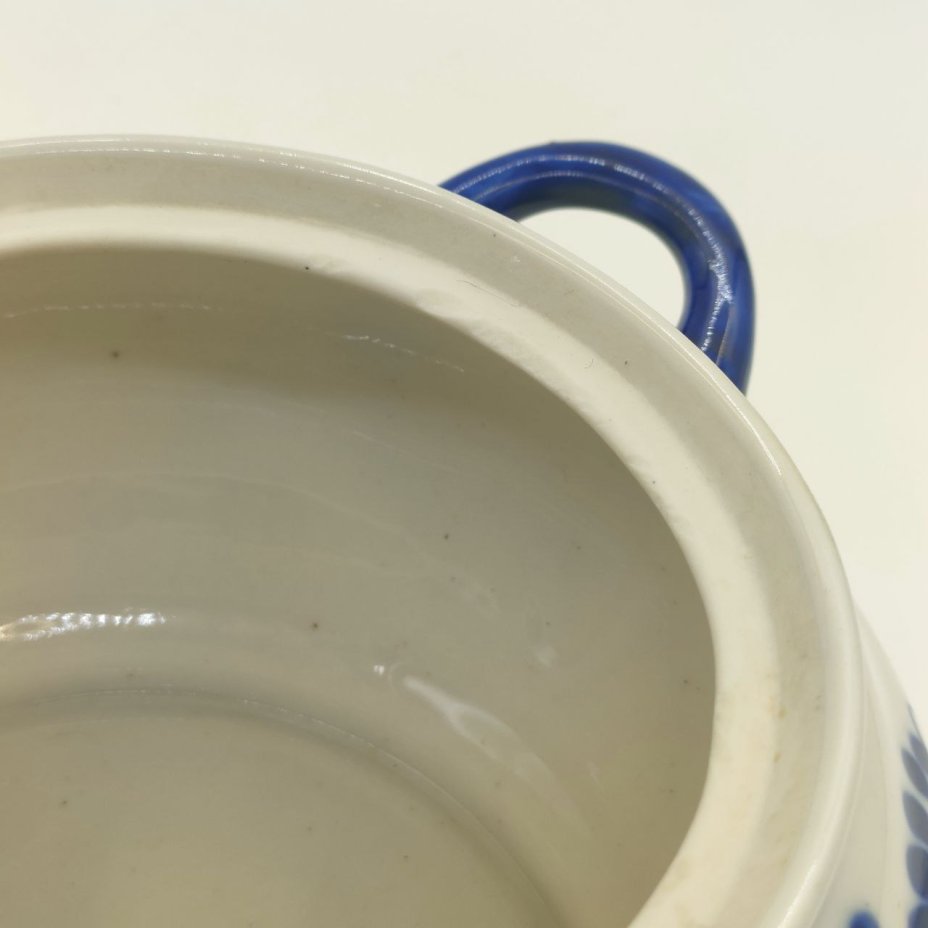 Супница (пельменница) с фигурной ручкой и цветочным декором, фарфор, роспись, Объединение «Гжель», СССР, 1986-1991 гг.