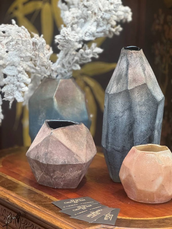 Ваза интерьерная с имитацией фактуры камня, стекло, люстр, крытье, матирование, Российская Федерация, 2025 г.