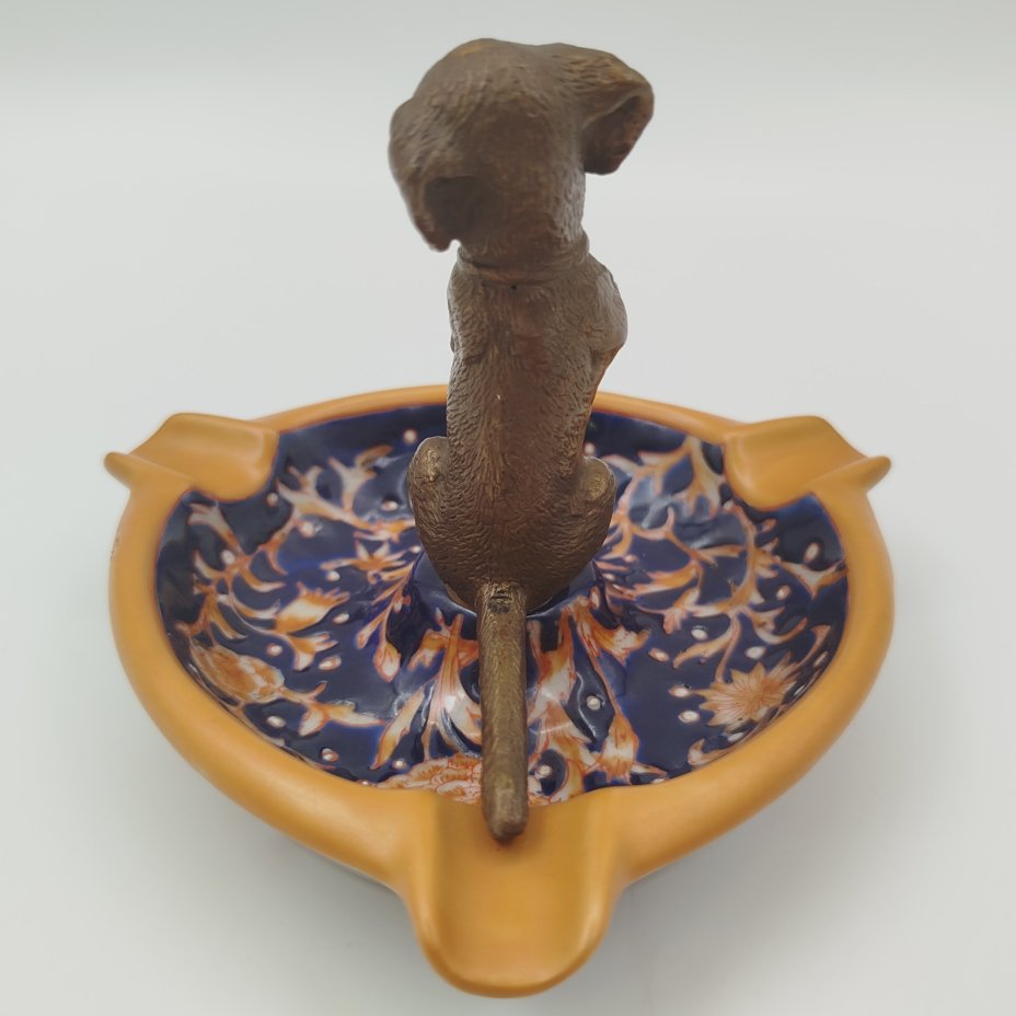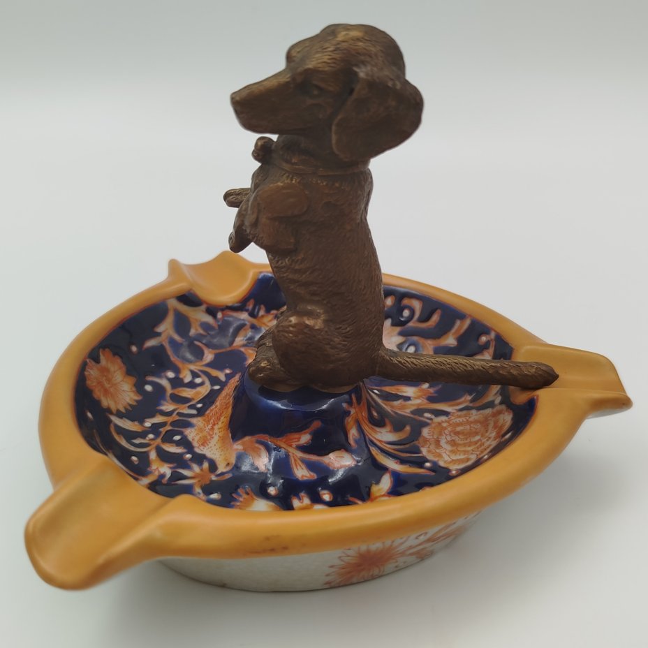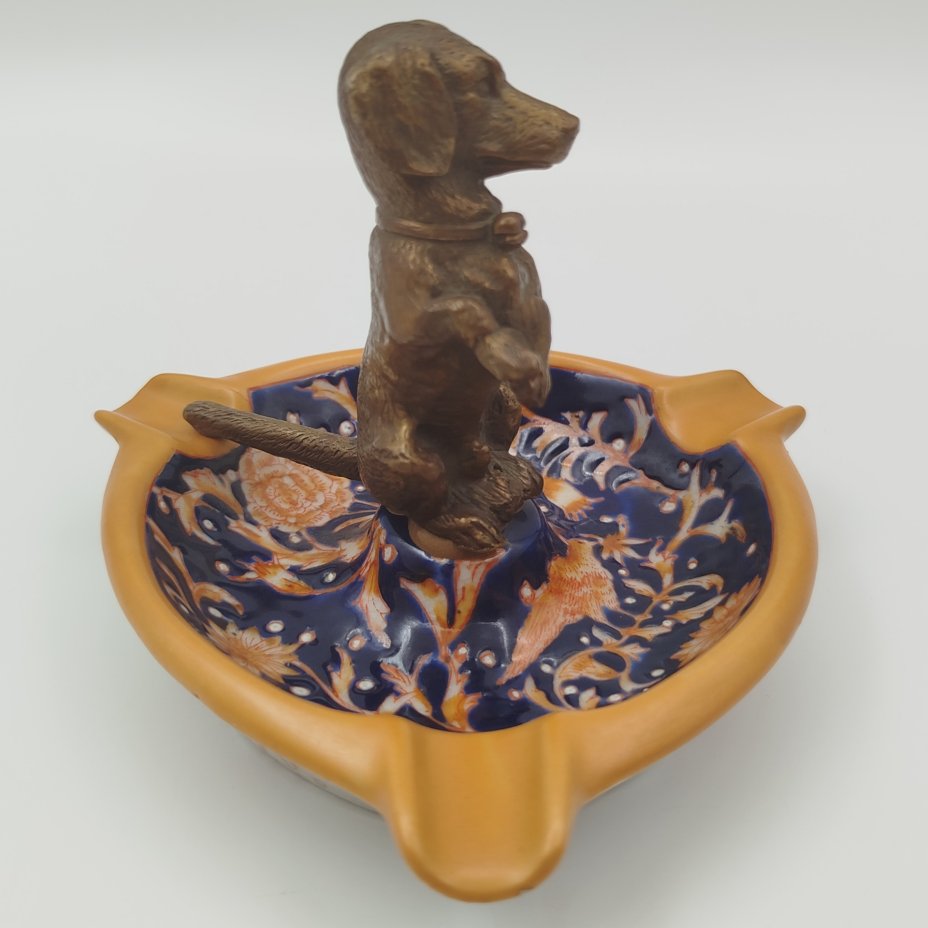 Пепельница со скульптурным изображением в виде таксы, фарфор, роспись, бронза, Wong Lee, Китай, 1990-2000 гг.