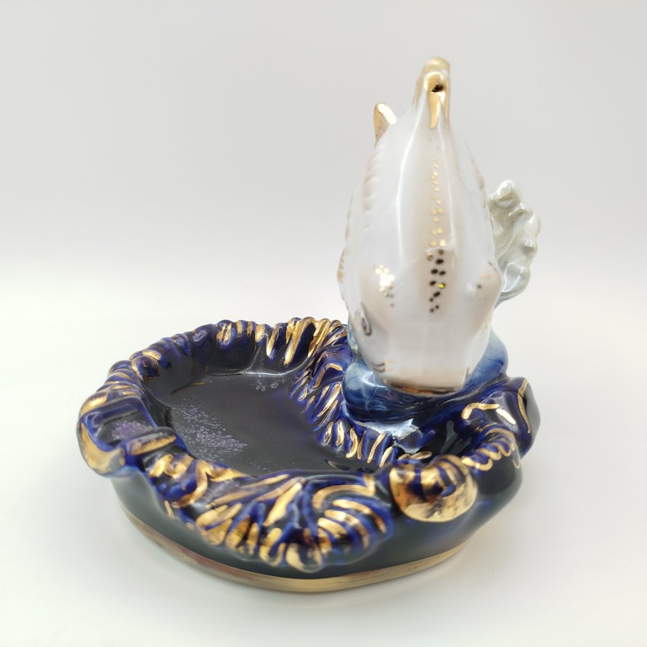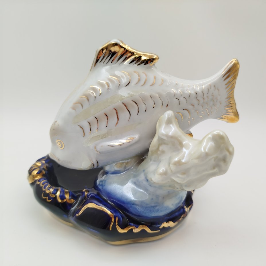Пепельница (статуэтка) "Карп", скульптор П.М. Кожин, фарфор, роспись, золочение, Дулевский фарфоровый завод (Дулёво), СССР, 1956 г.