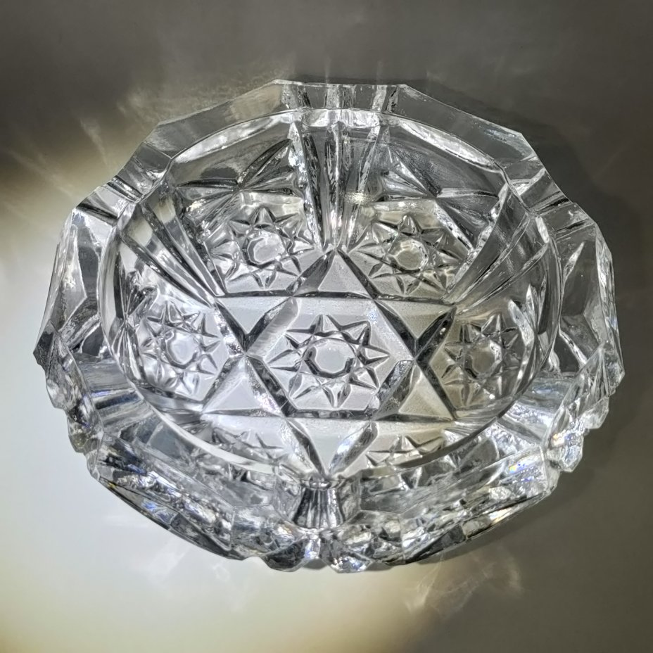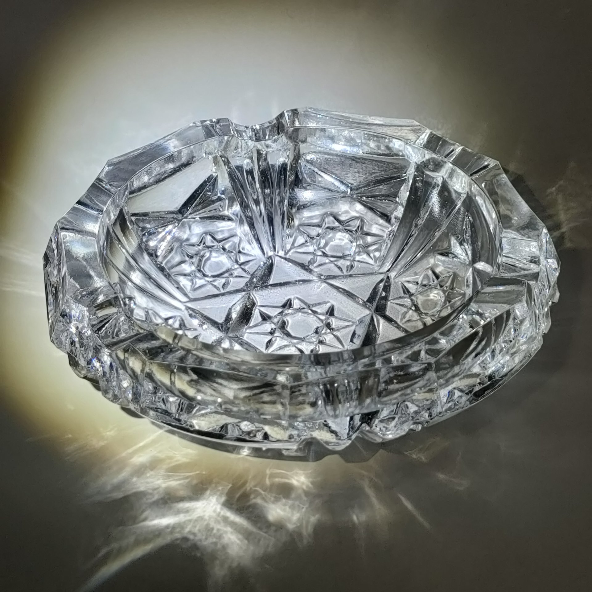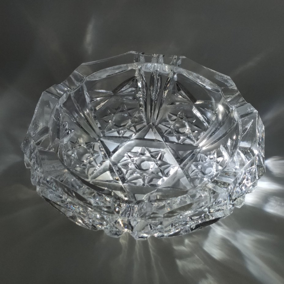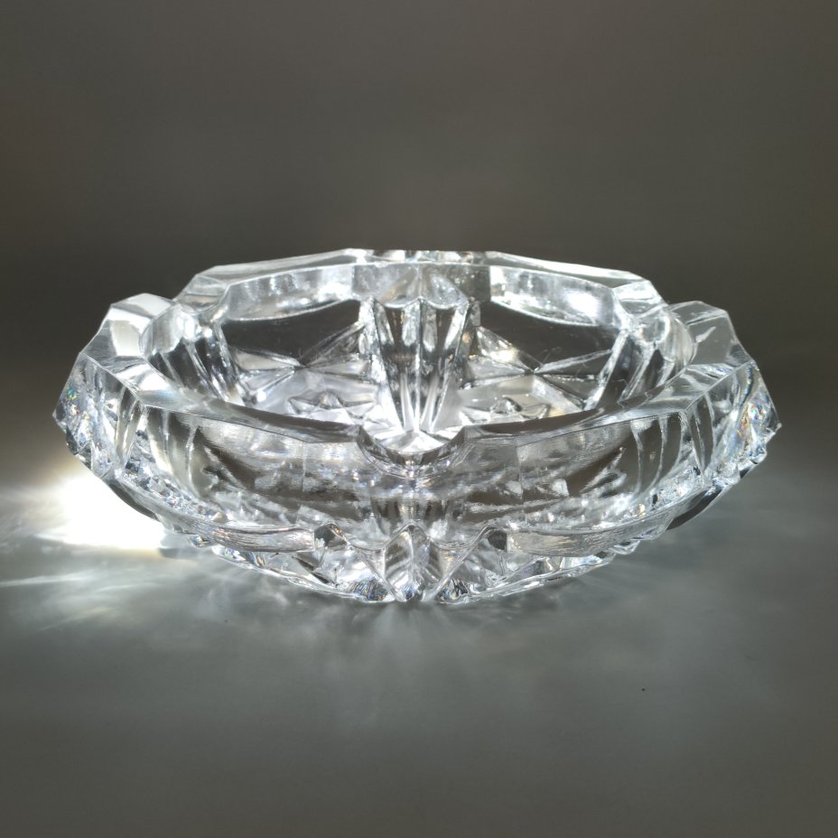 Пепельница настольная с резным геометрическим декором, хрусталь, алмазная грань, СССР, 1970-1990 гг.