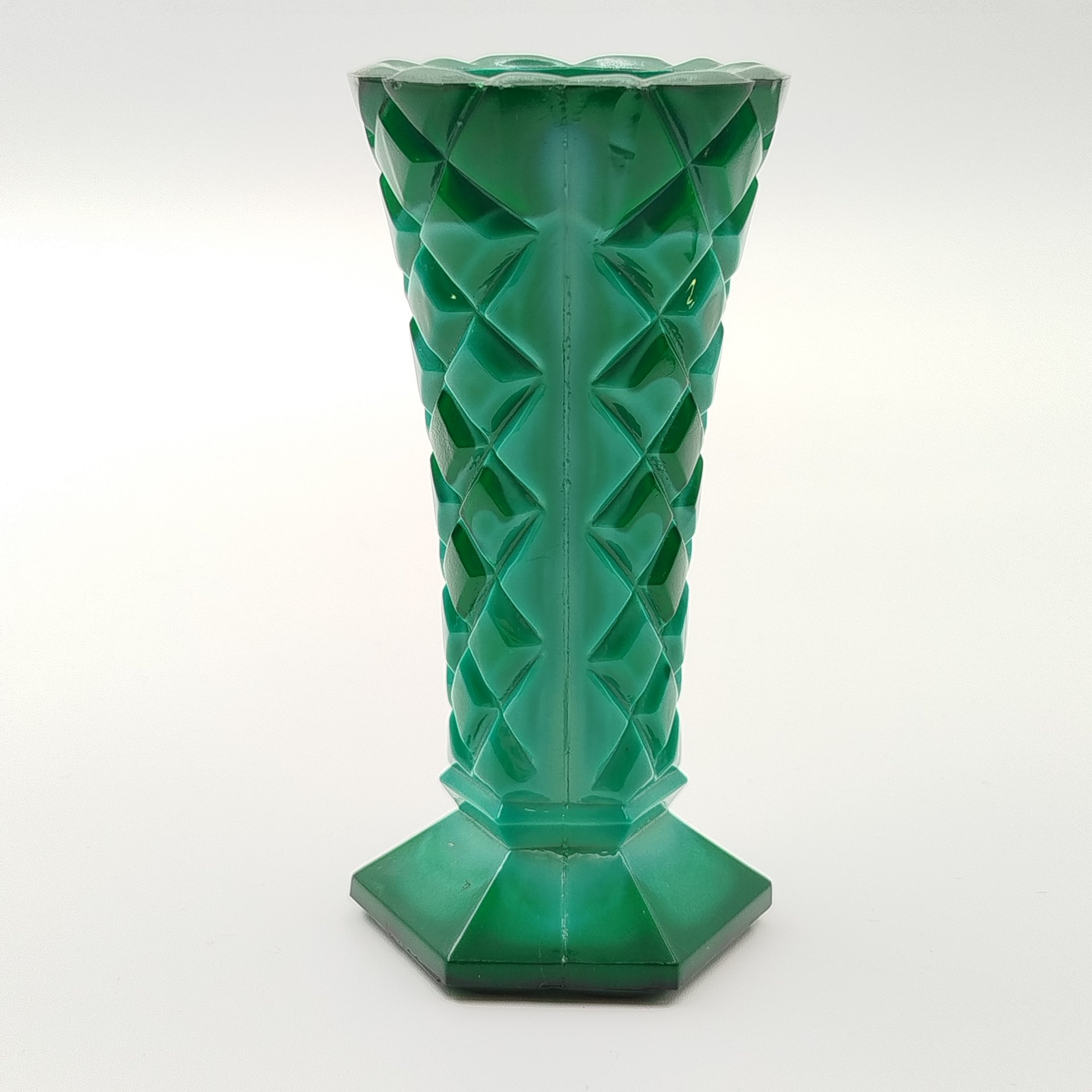 купить Ваза миниатюрная для небольшого букета зеленого оттенка, стекло, (малахитовое стекло), Чехословакия, 1950-1980 гг.