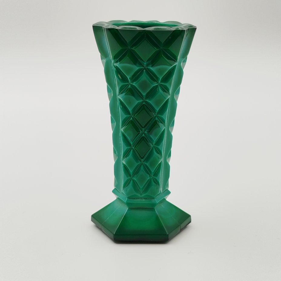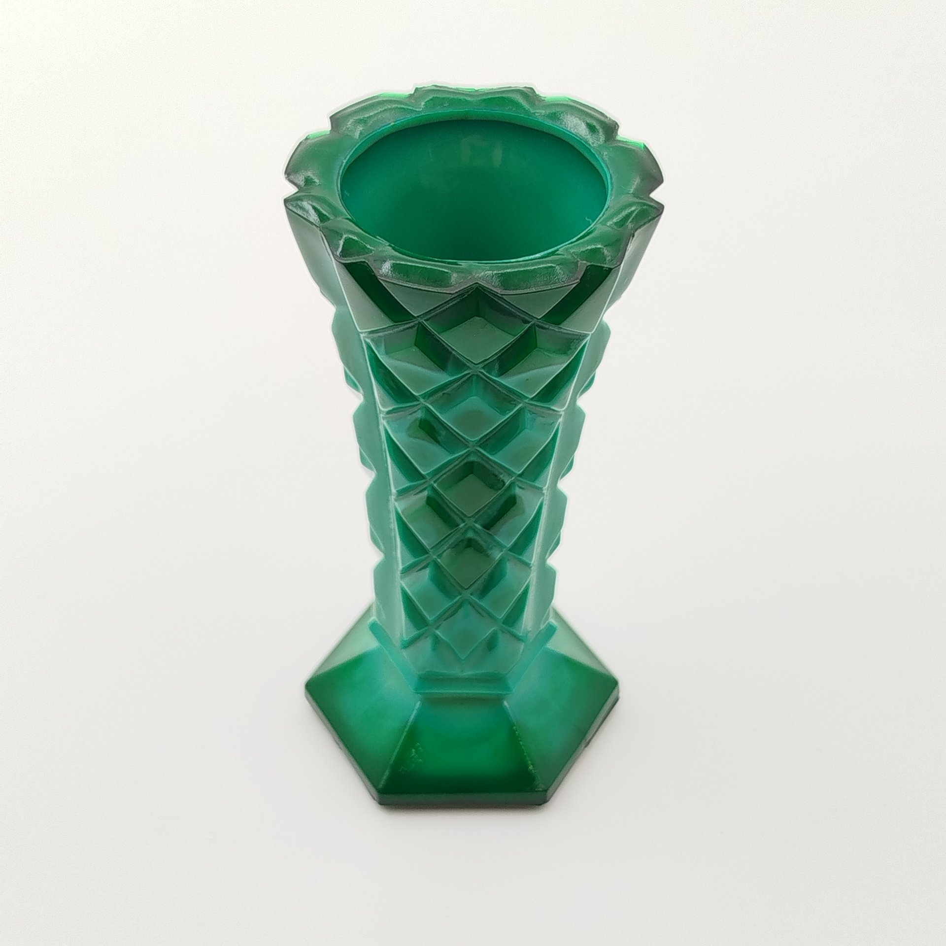 Ваза миниатюрная для небольшого букета зеленого оттенка, стекло, (малахитовое стекло), Чехословакия, 1950-1980 гг.