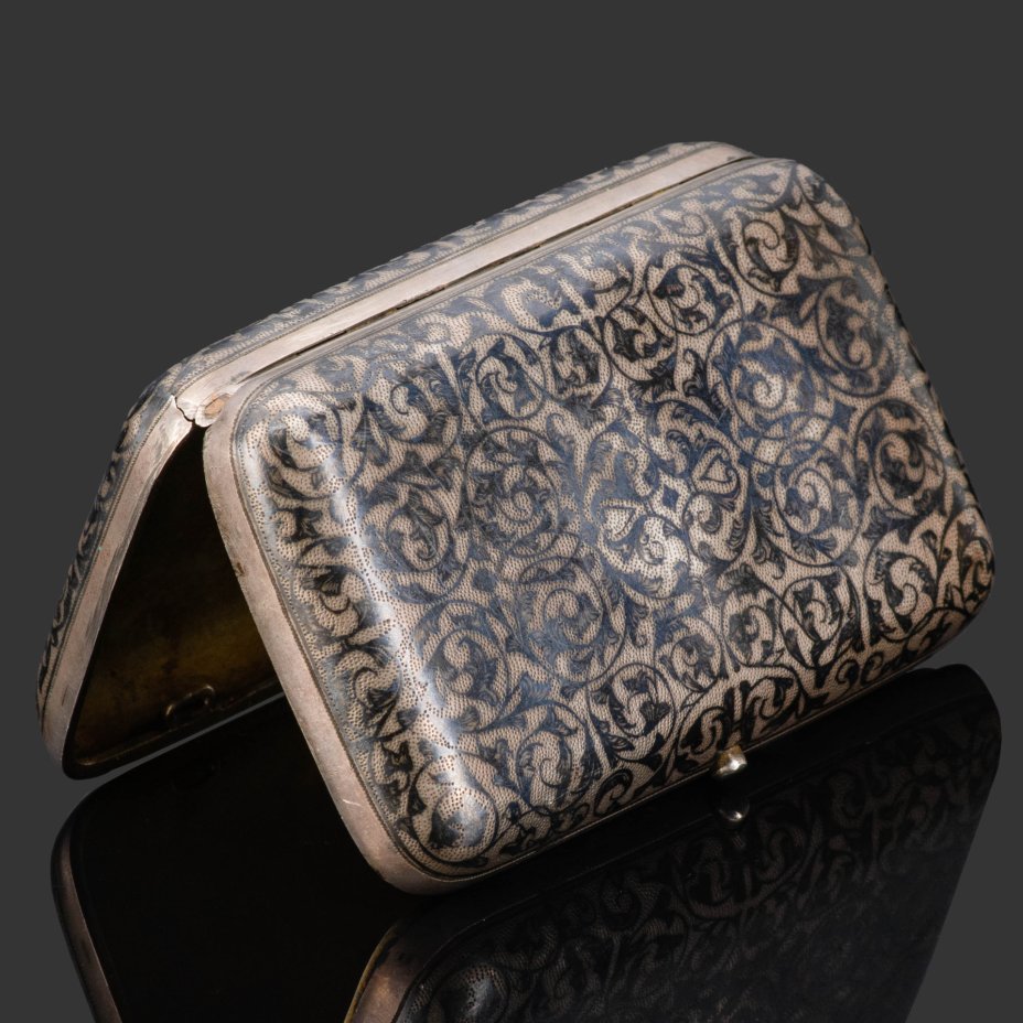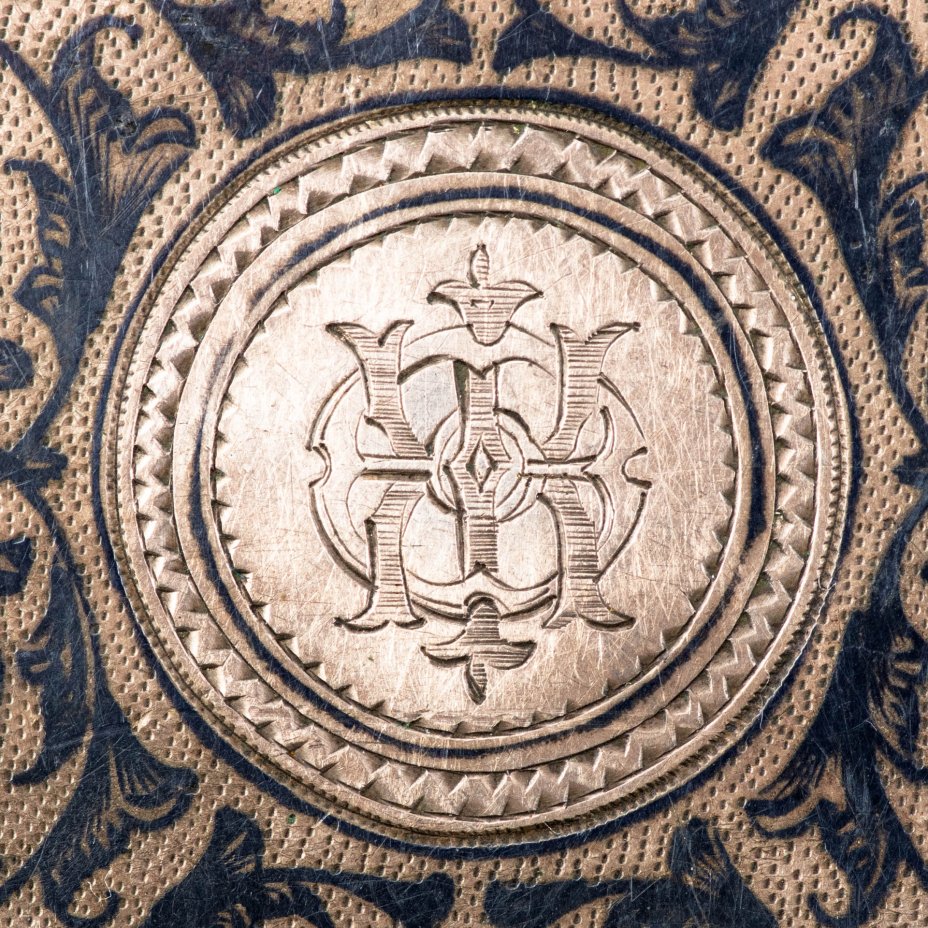 Портсигар с растительным декором и владельческим вензелем на крышке, мастер-монограммист "ИЯГ" (предположительно, Гришин Иван Яковлевич), металл, чернь, г. Москва, Российская империя, 1885 г.
