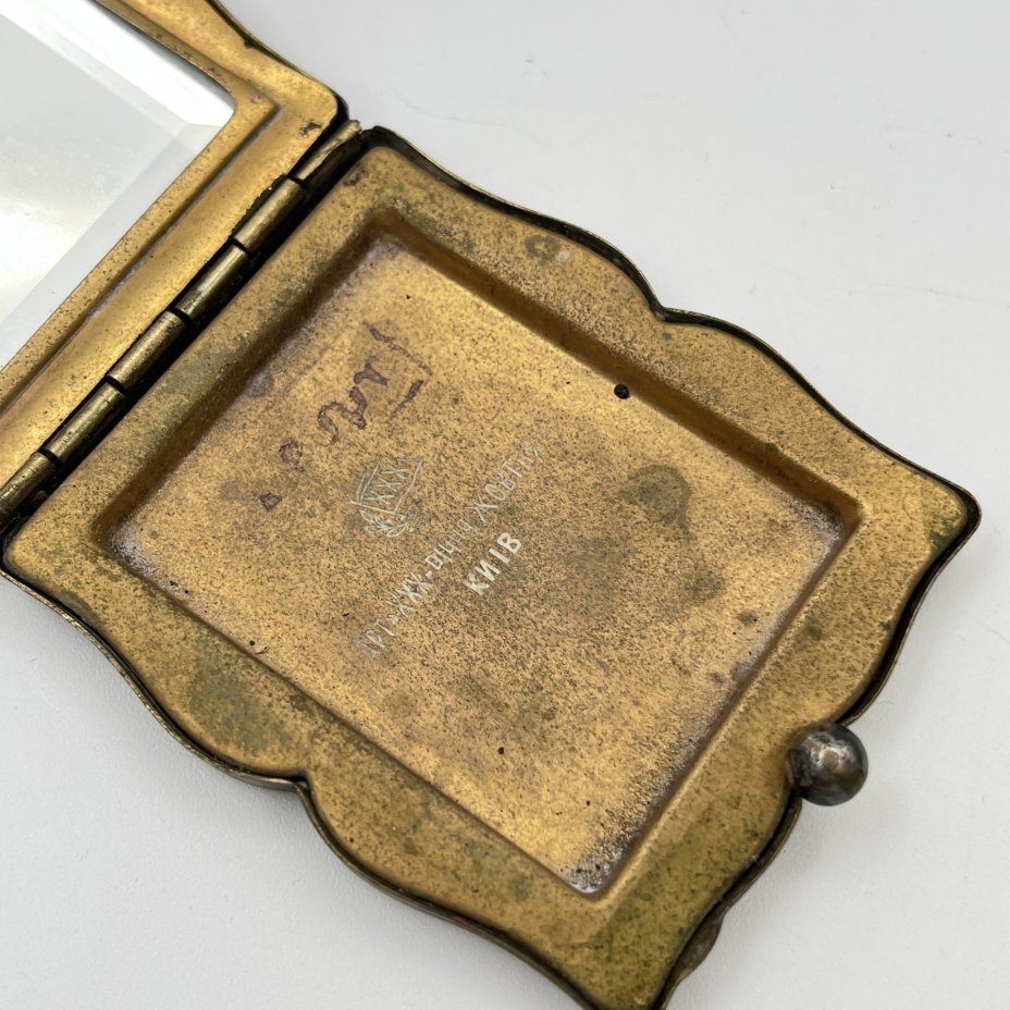 Пудреница с изображением цветка, латунь, зеркало, Ленэмальер (Ленинградский эмальер), СССР, 1960-1980 гг.