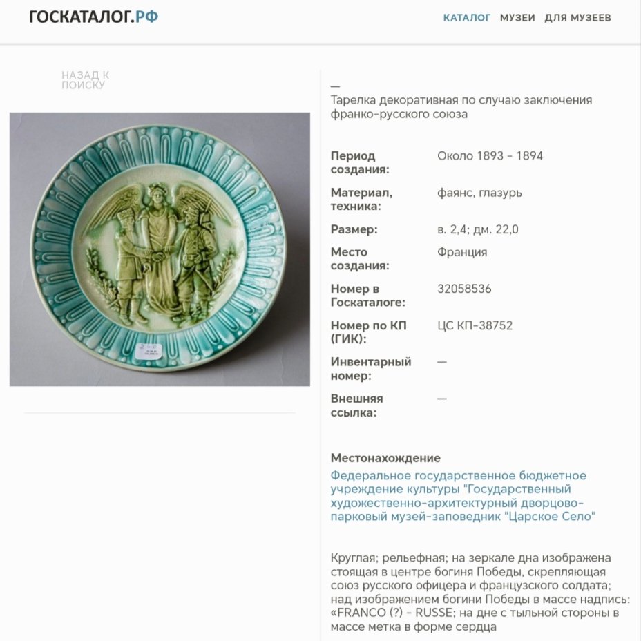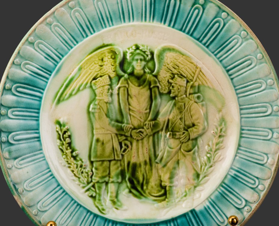 Тарелка декоративная "Заключения франко-русского союза", фаянс, глазурь, рельеф, Франция, 1893-1894 гг.