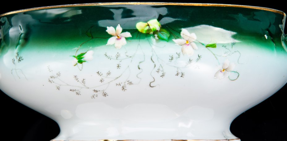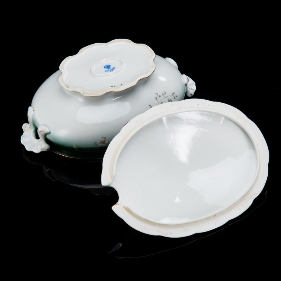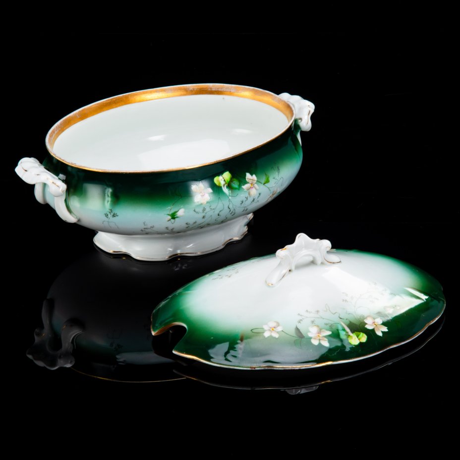 Терина (Супница) для подачи горячих блюд, с цветочным декором, фарфор, крытье, роспись, золочение, Товарищество М.С. Кузнецова в Вербилках (г. Дмитров), Российская империя, 1891-1917 гг.