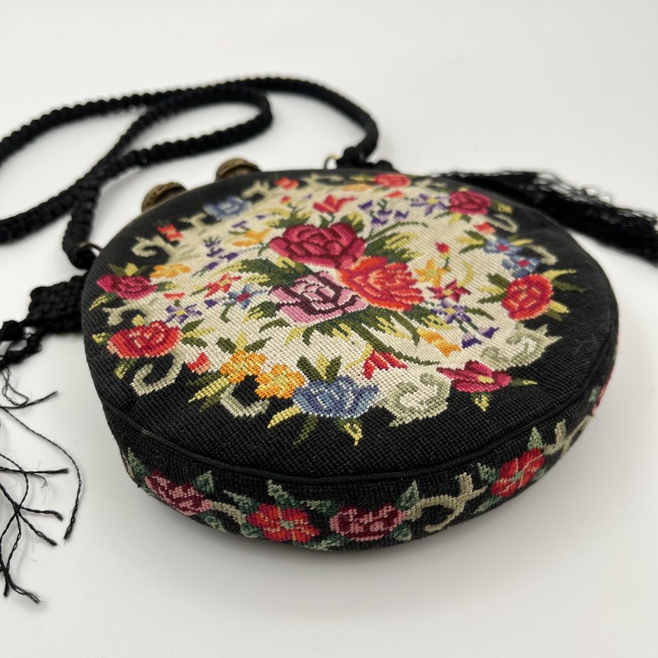 Кошелек с цветочным венком, ткань, вышивка, латунь, Западная Европа, 1890-1910 гг.