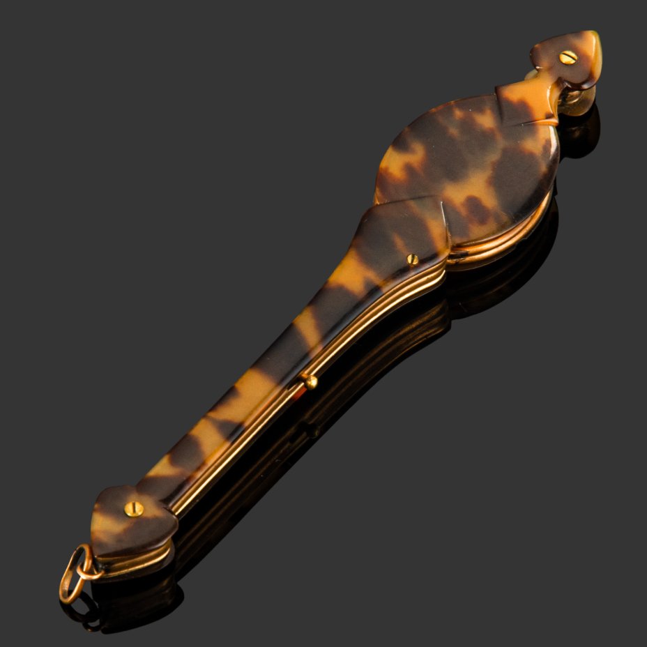 Лорнет дамский складной, латунь, панцирь черепахи, стекло, Западная Европа, 190-1880 гг.