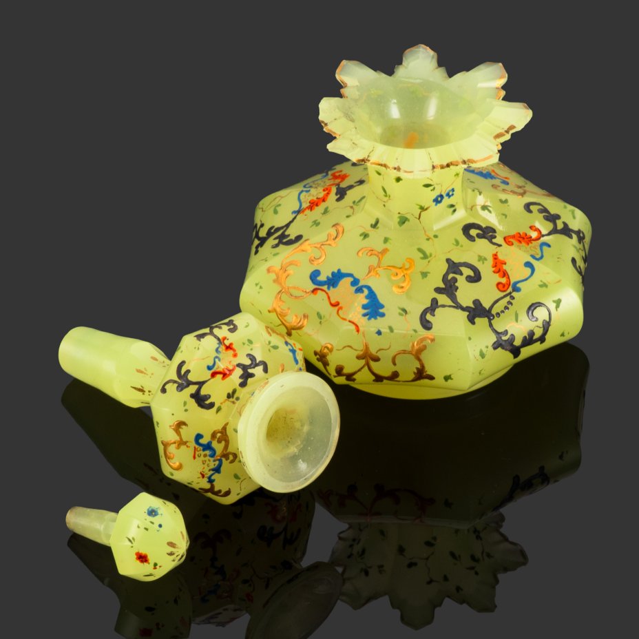 - Материал: Стекло, урановое, гранение, эмаль, роспись
