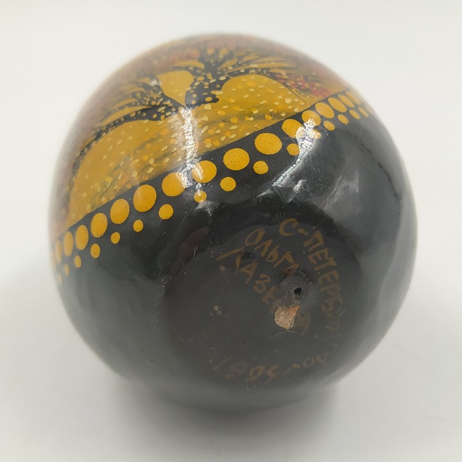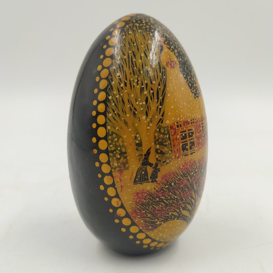 Яйцо декоративное с изображением зимнего пейзажа, худ. Ольга Лазеева (?), дерево, роспись, Российская Федерация, 1994 г.