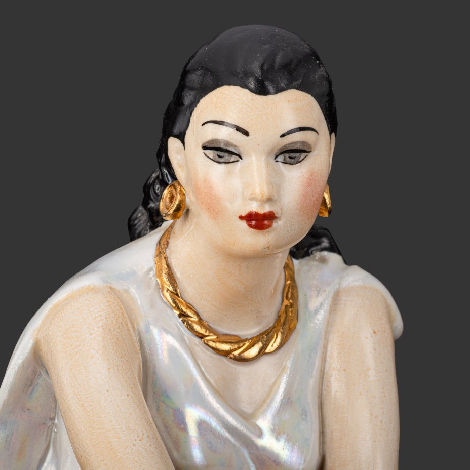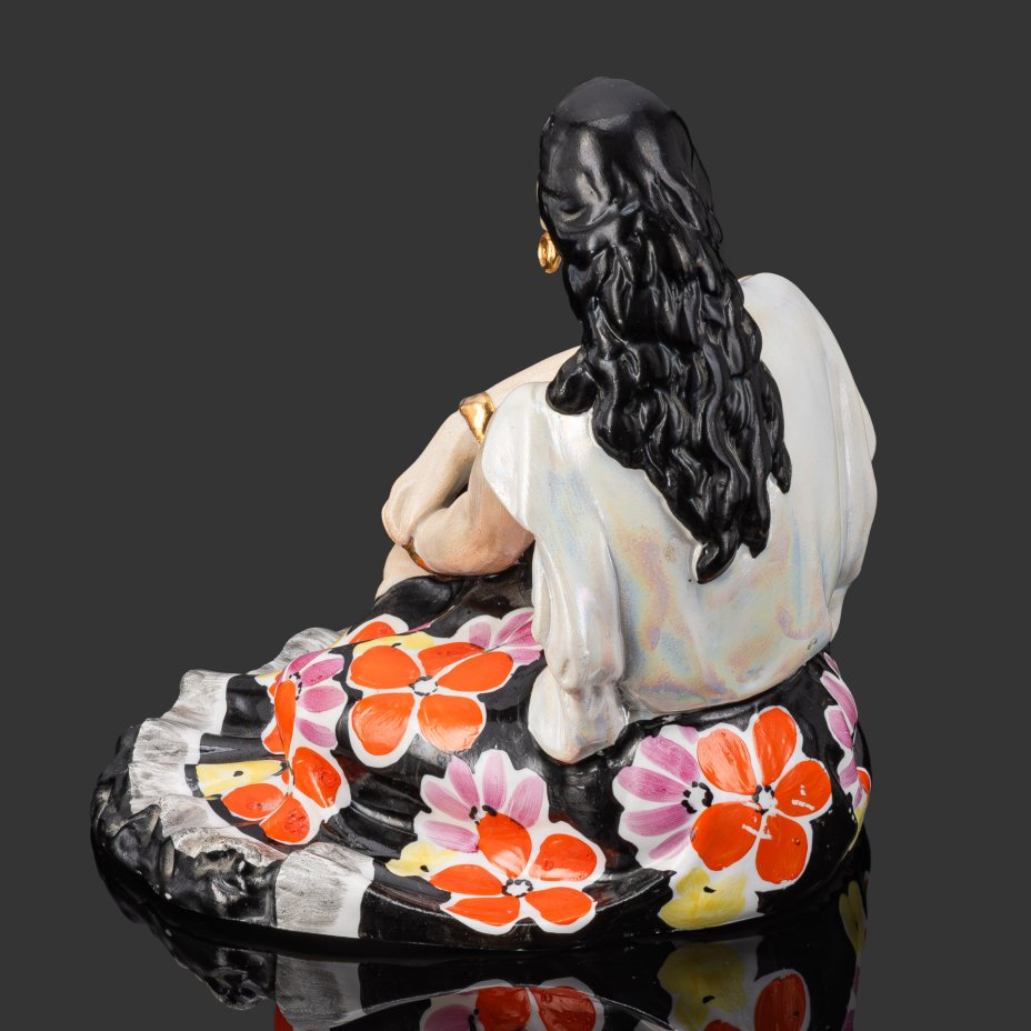 Статуэтка "Цыганка Земфира", скульптор А. Д. Бржезицкая, фарфор, роспись, люстр, золочение, Дулевский фарфоровый завод (Дулёво), СССР, 1966 г.