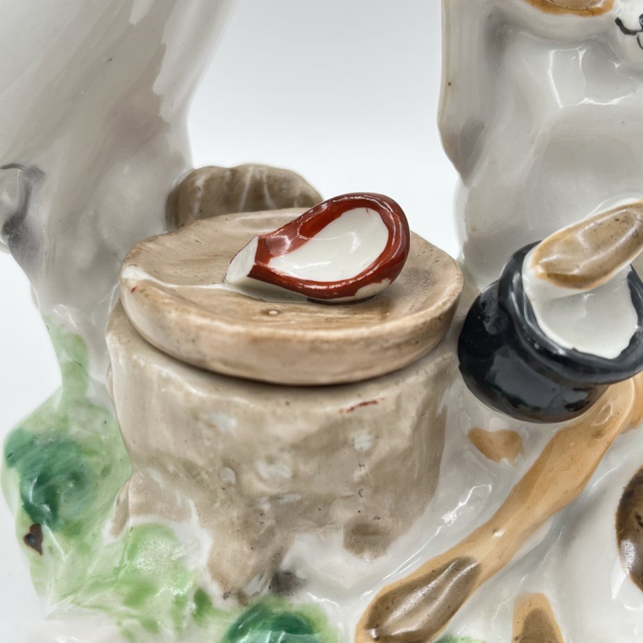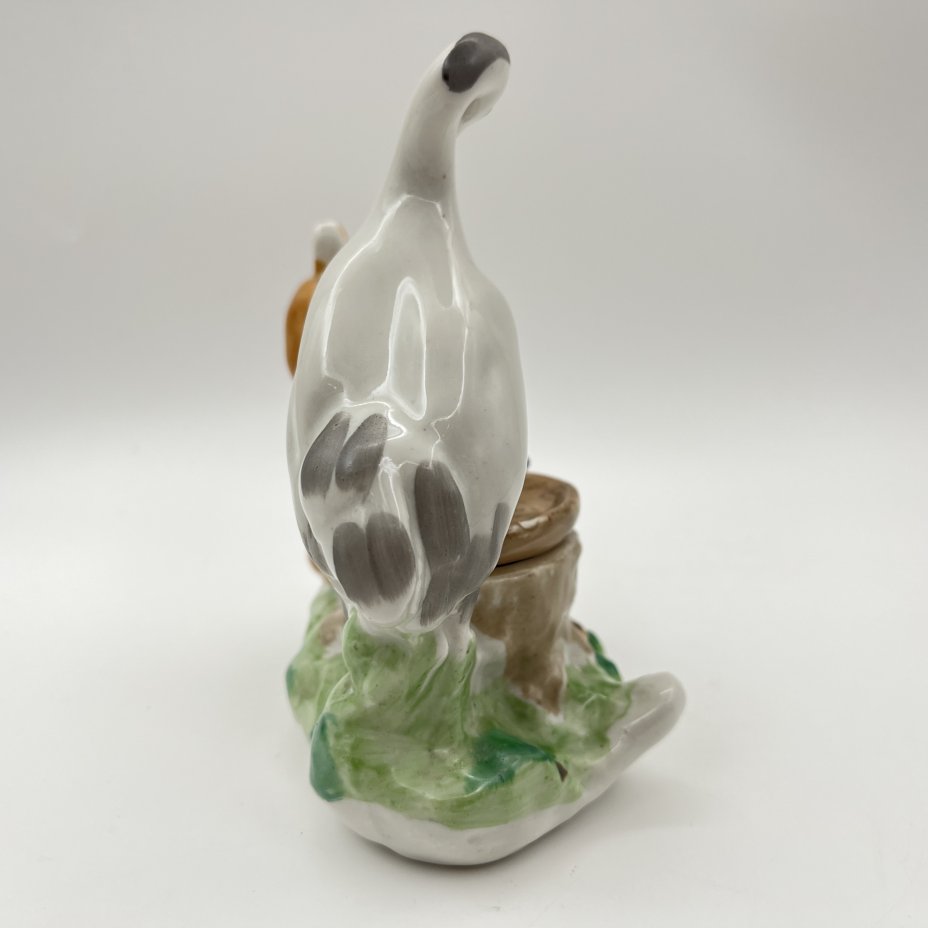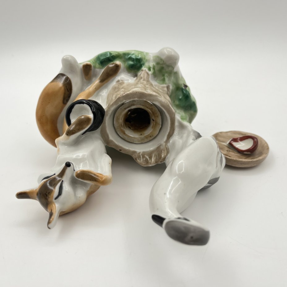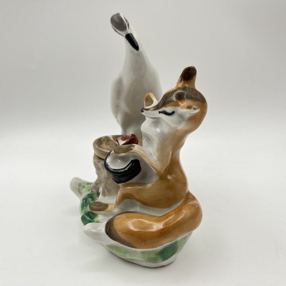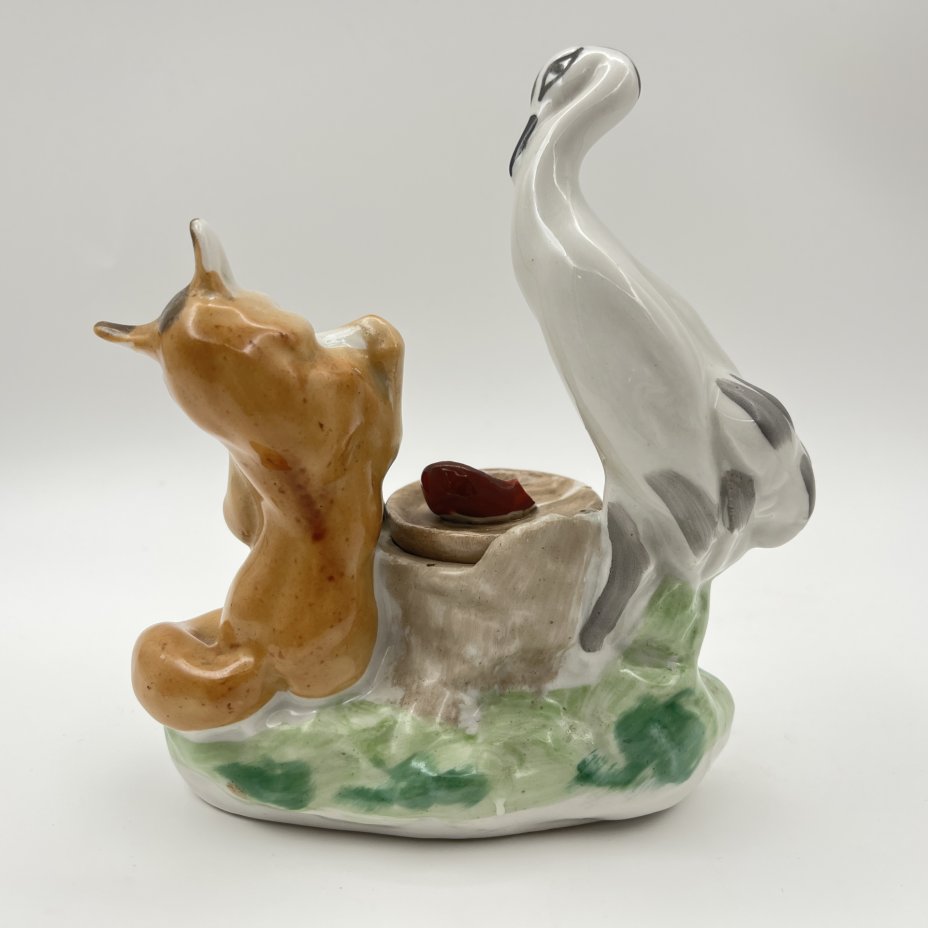 Чернильница «Лиса и журавль», скульптор Ю.П. Смирнов, фарфор, роспись, Артель «Прогресс», СССР, 1950-1970 гг.