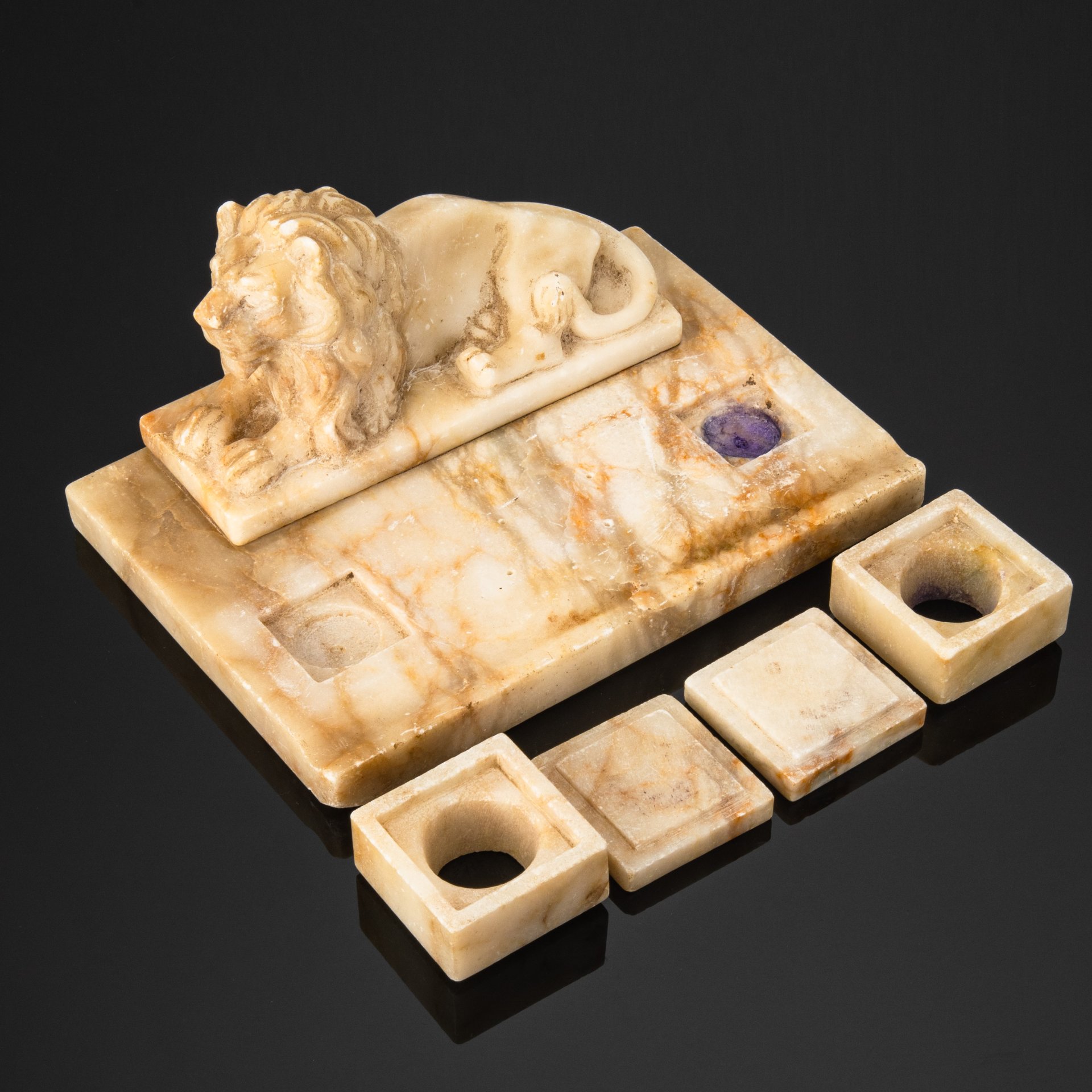 Купить Прибор чернильный кабинетный (чернильница) с рельефным антропоморфным и растительным декором на мраморном постаменте, Susse Freres, бронза, мрамор, Франция, 1880-1910 гг.