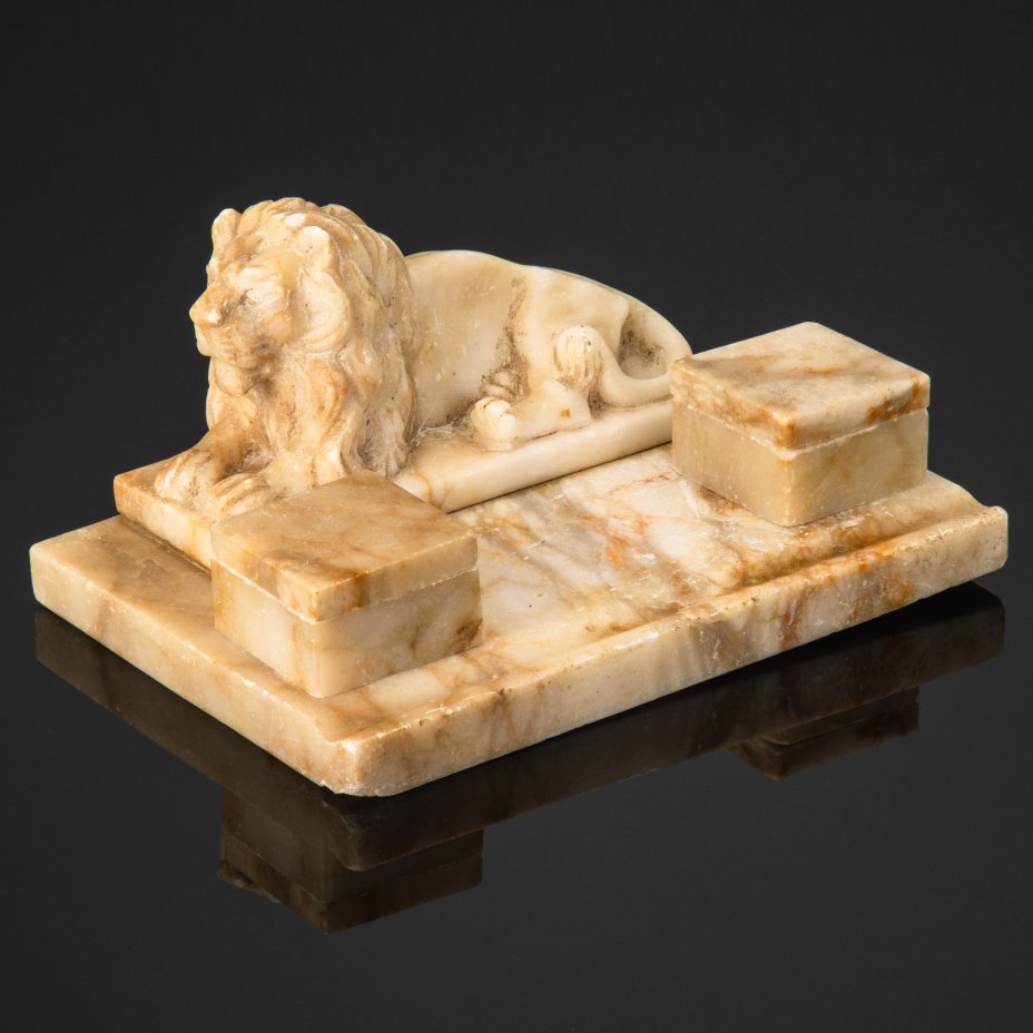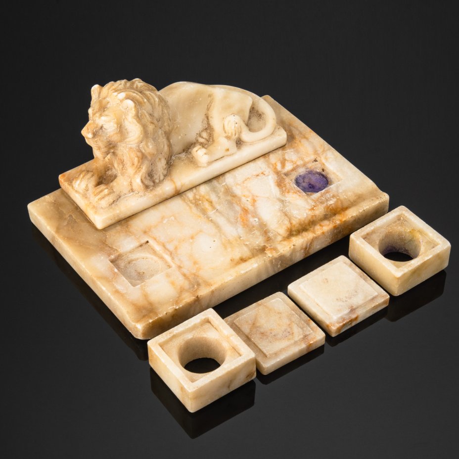 Прибор чернильный кабинетный (чернильница) с рельефным антропоморфным и растительным декором на мраморном постаменте, Susse Freres, бронза, мрамор, Франция, 1880-1910 гг.