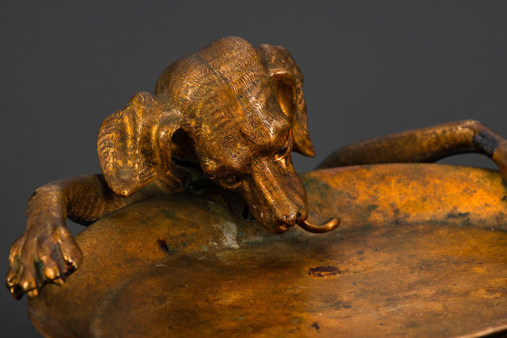 Купить Прибор письменный (чернильница и карандашница), стекло, латунь, камень, Россия, 1900-1940 гг.