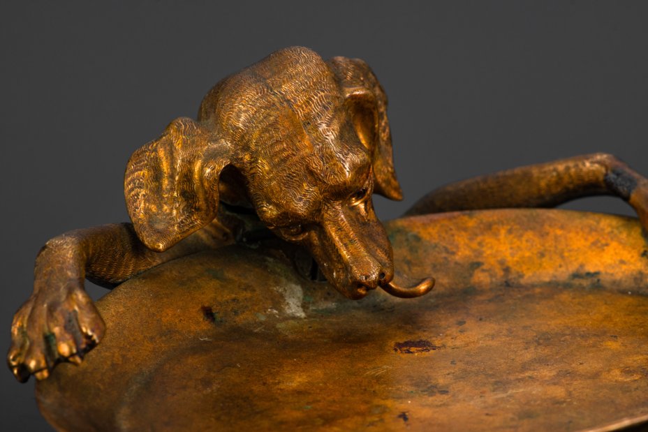 Карандашница, украшенная фигуркой мальчика с кошкой и собакой, фарфор, бисквит, роспись, золочение, Западная Европа, 1930-1950 гг.