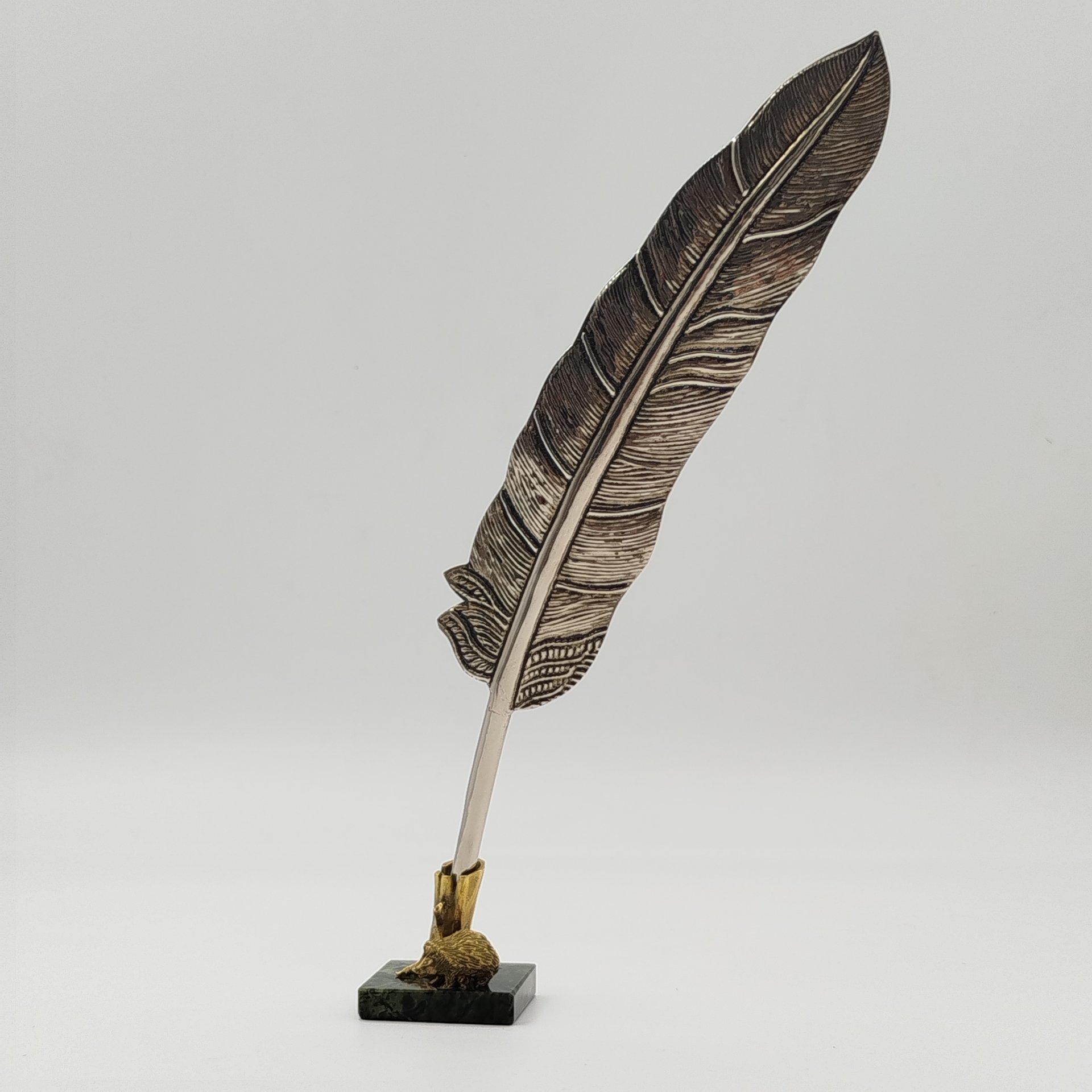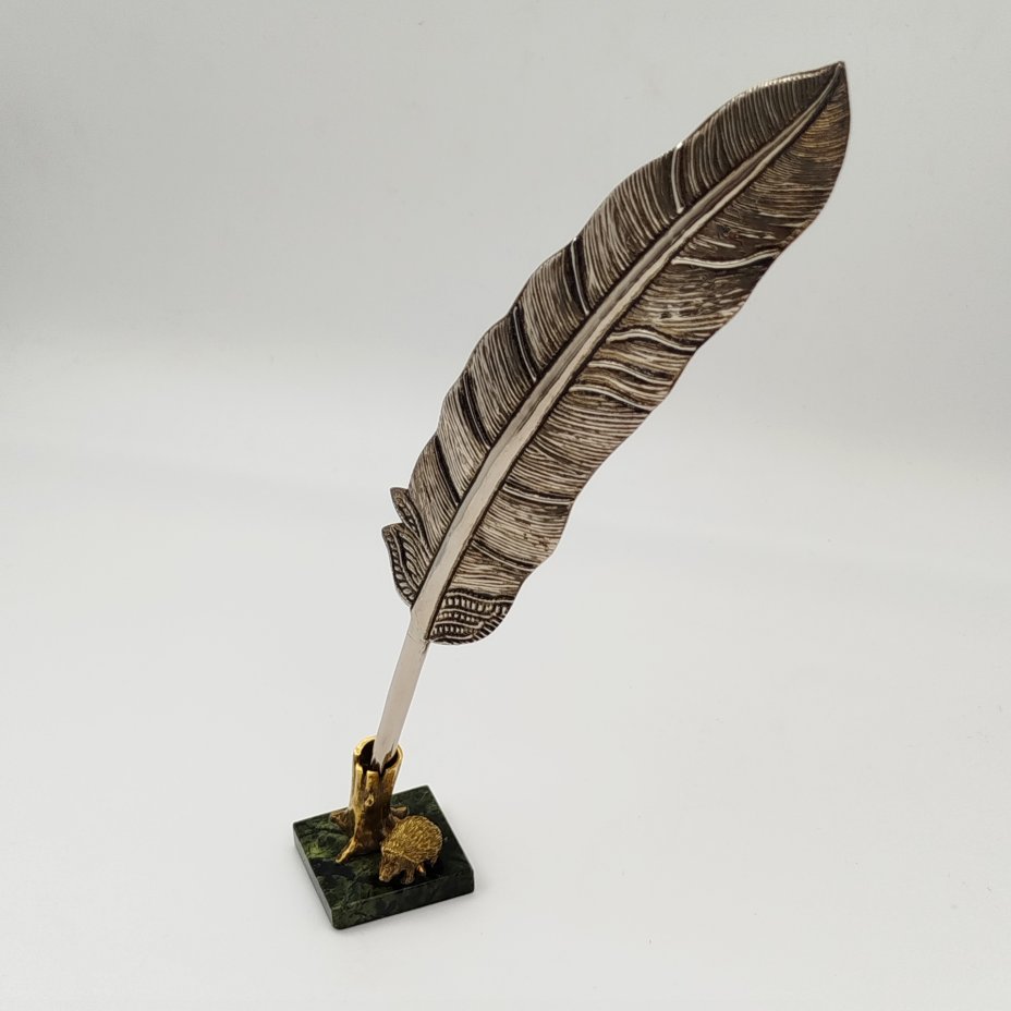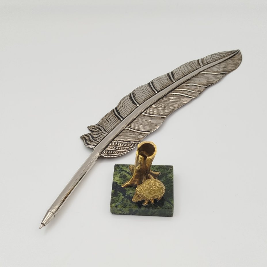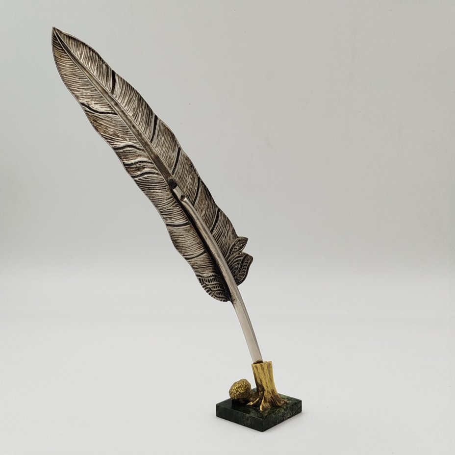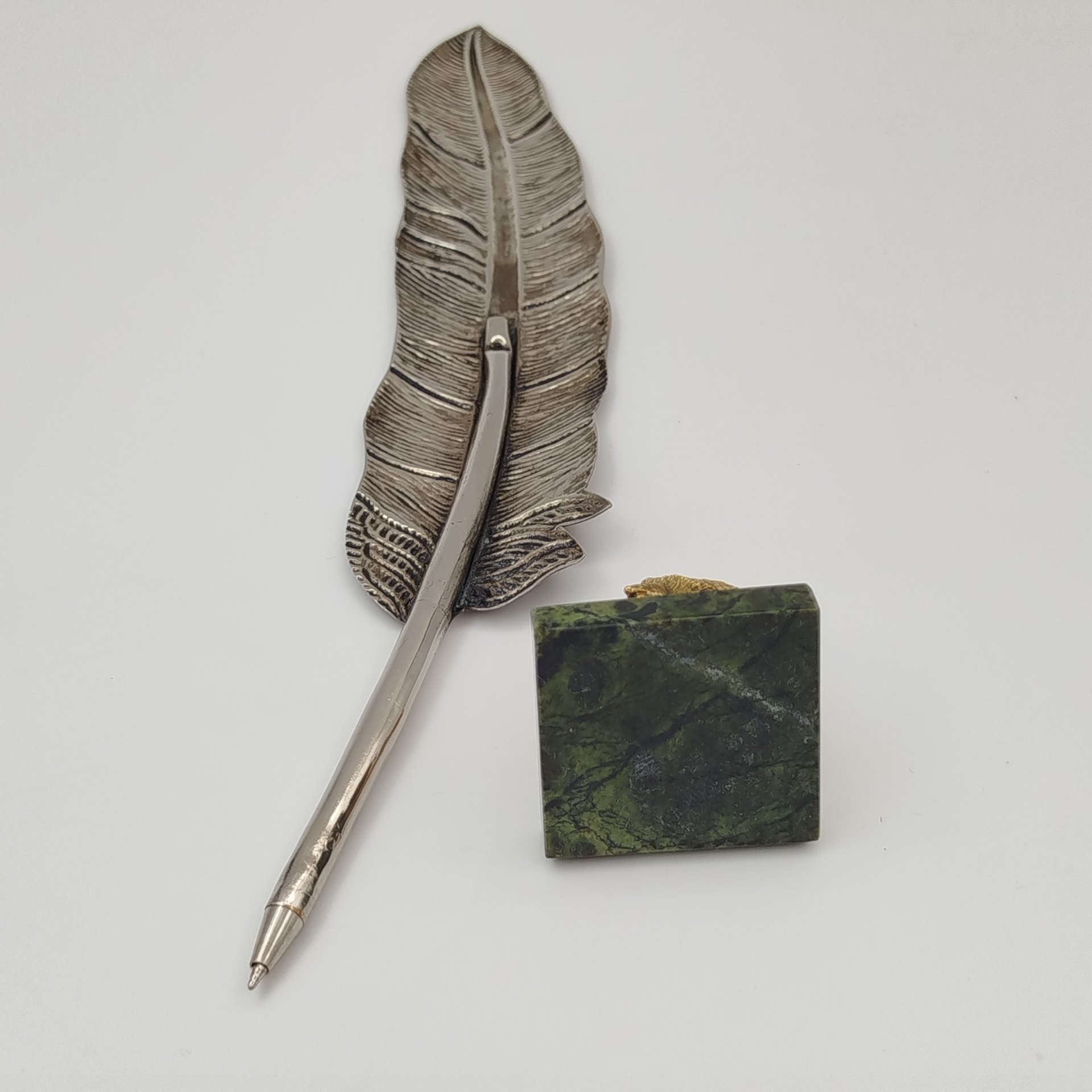 Прибор письменный "Лира" с двумя чернильницами на массивной подставке, латунь, камень, стекло, Российская империя, 1890-1915 гг.