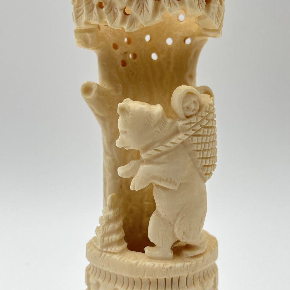 Статуэтка-карандашница "Машенька и медведь", кость, резьба, композитный материал, СССР, 1970-1990 гг.
