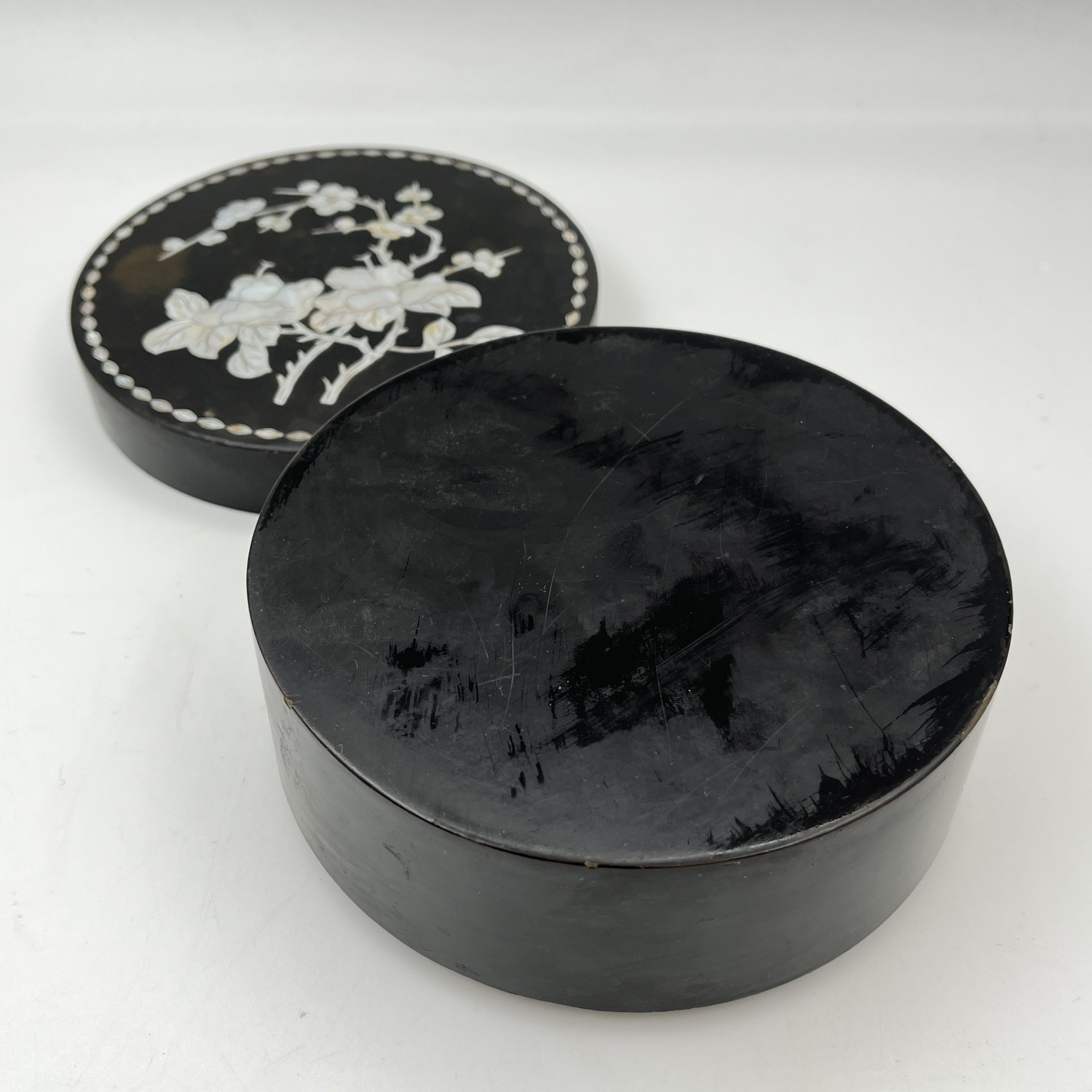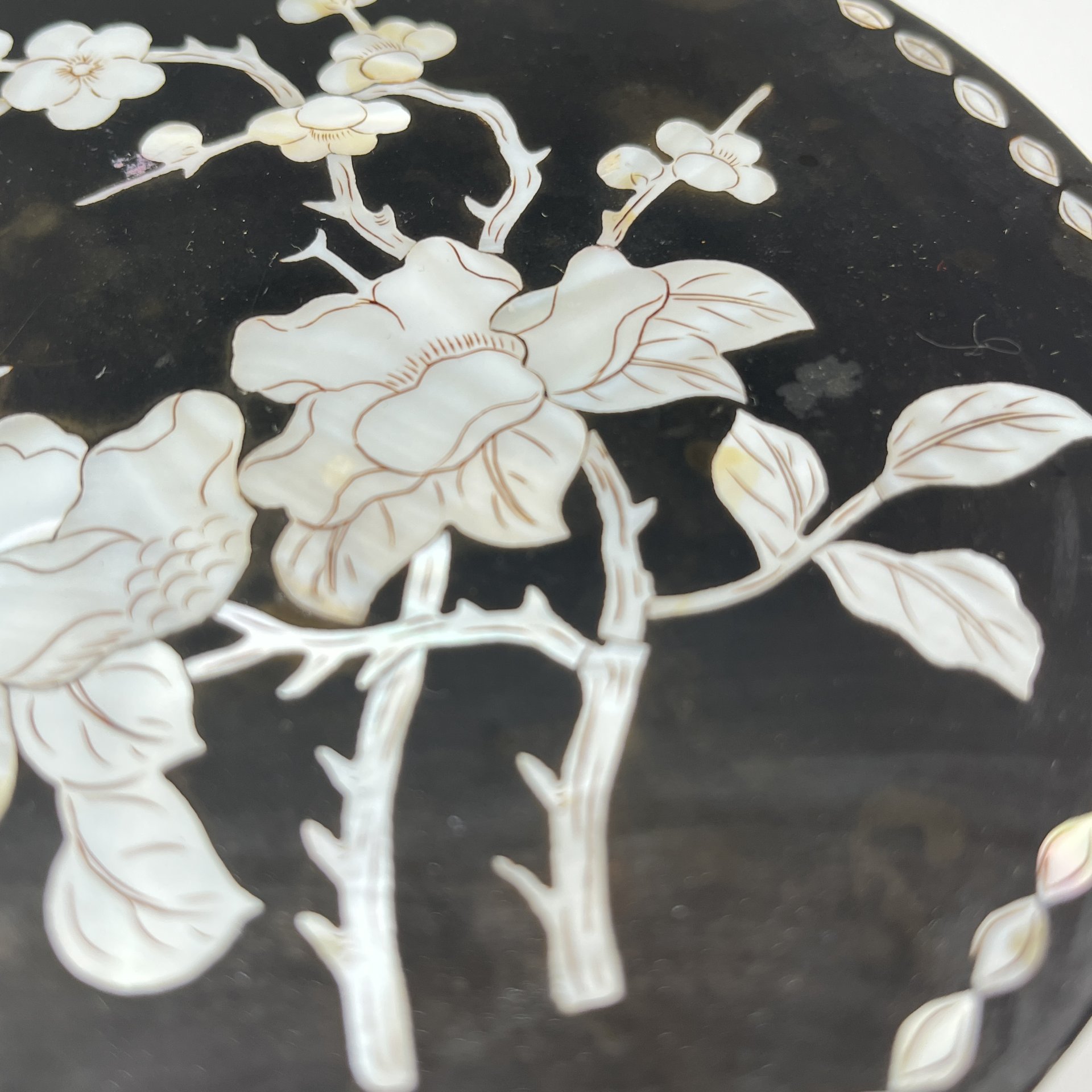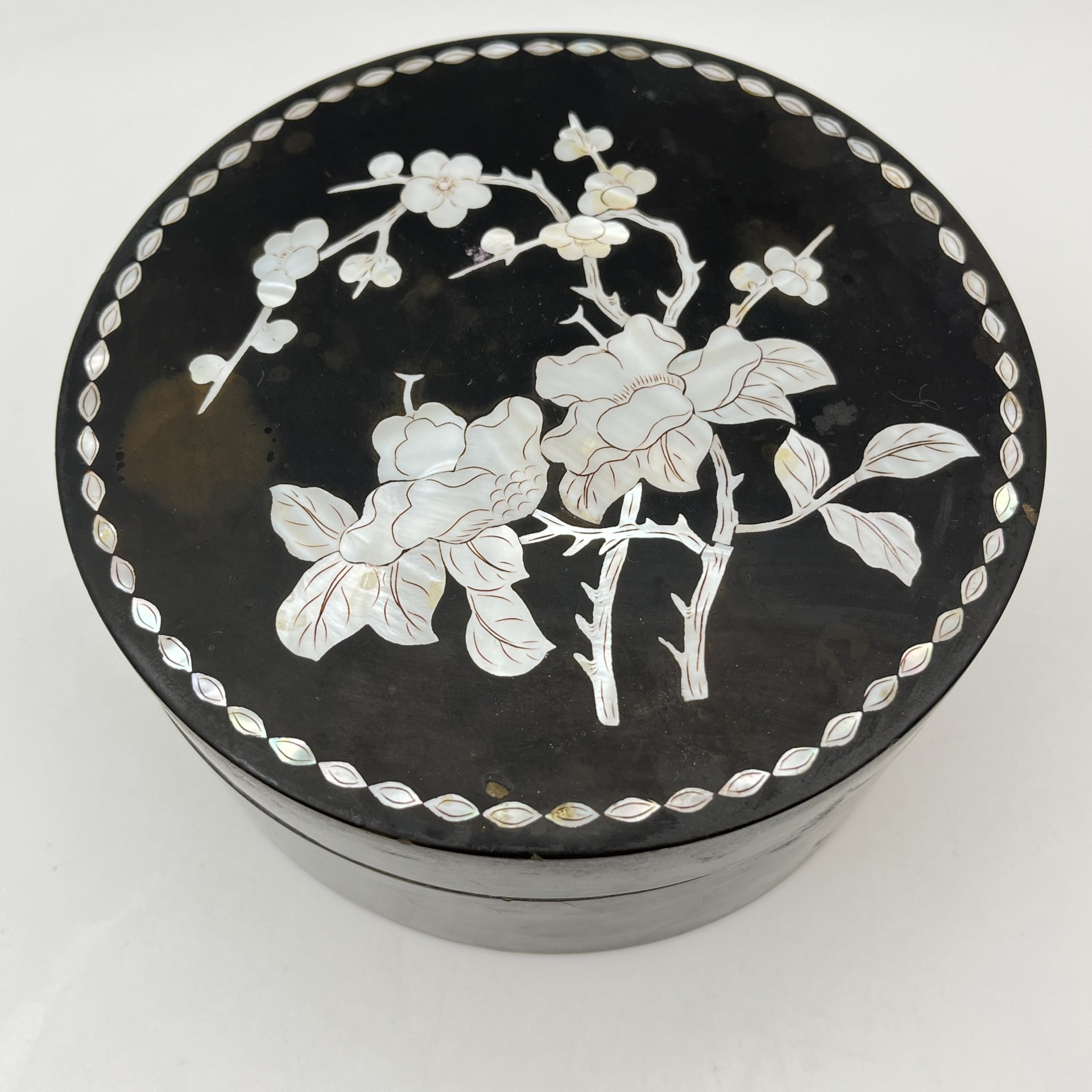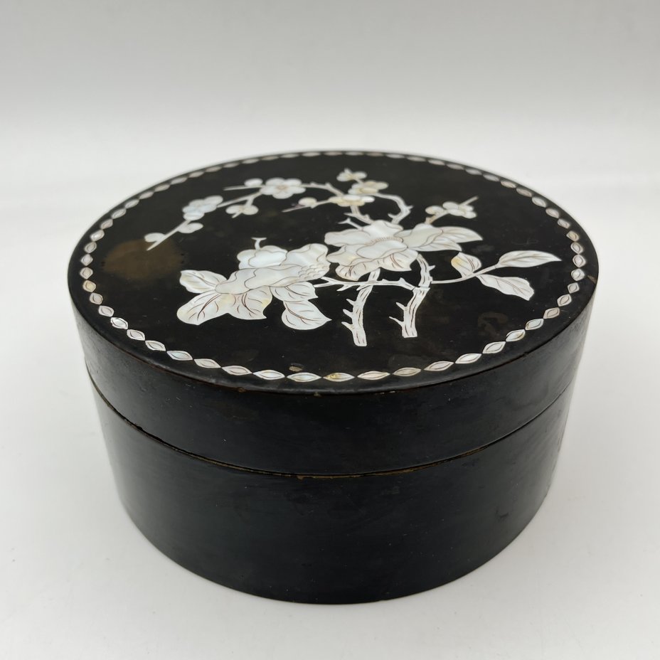 Шкатулка круглой формы с цветочным декором, папье-маше, лак, перламутр, Азия, 1950-1980 гг.