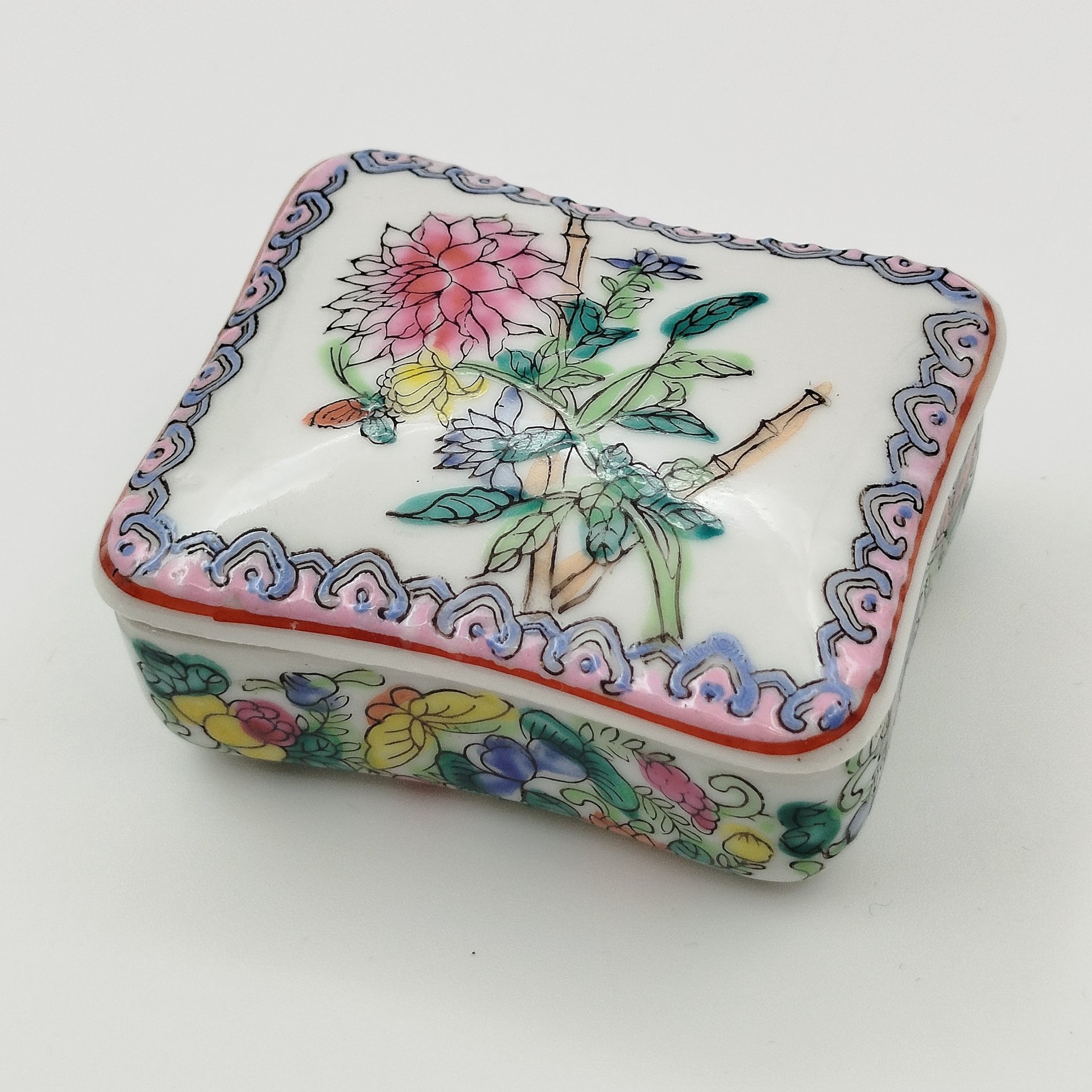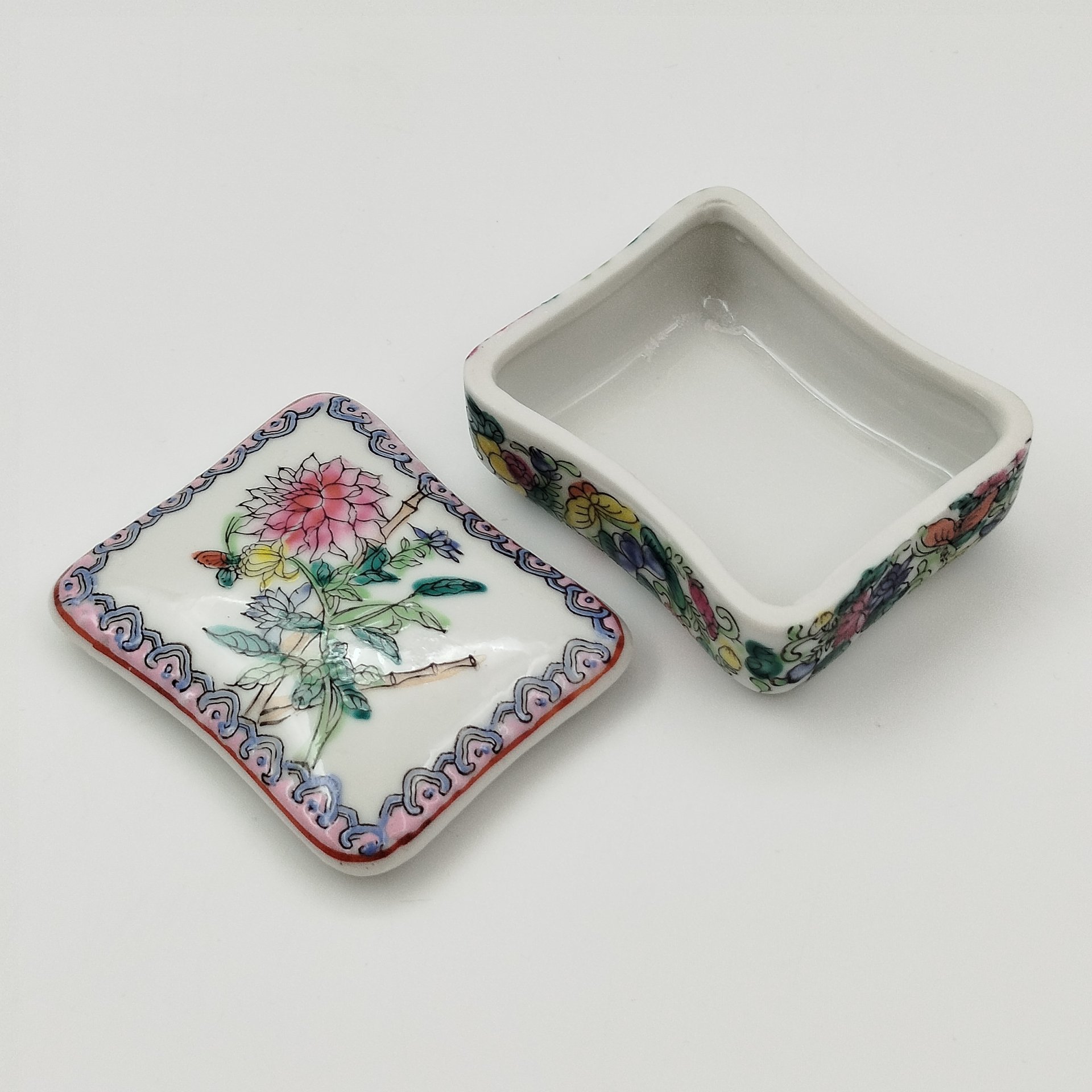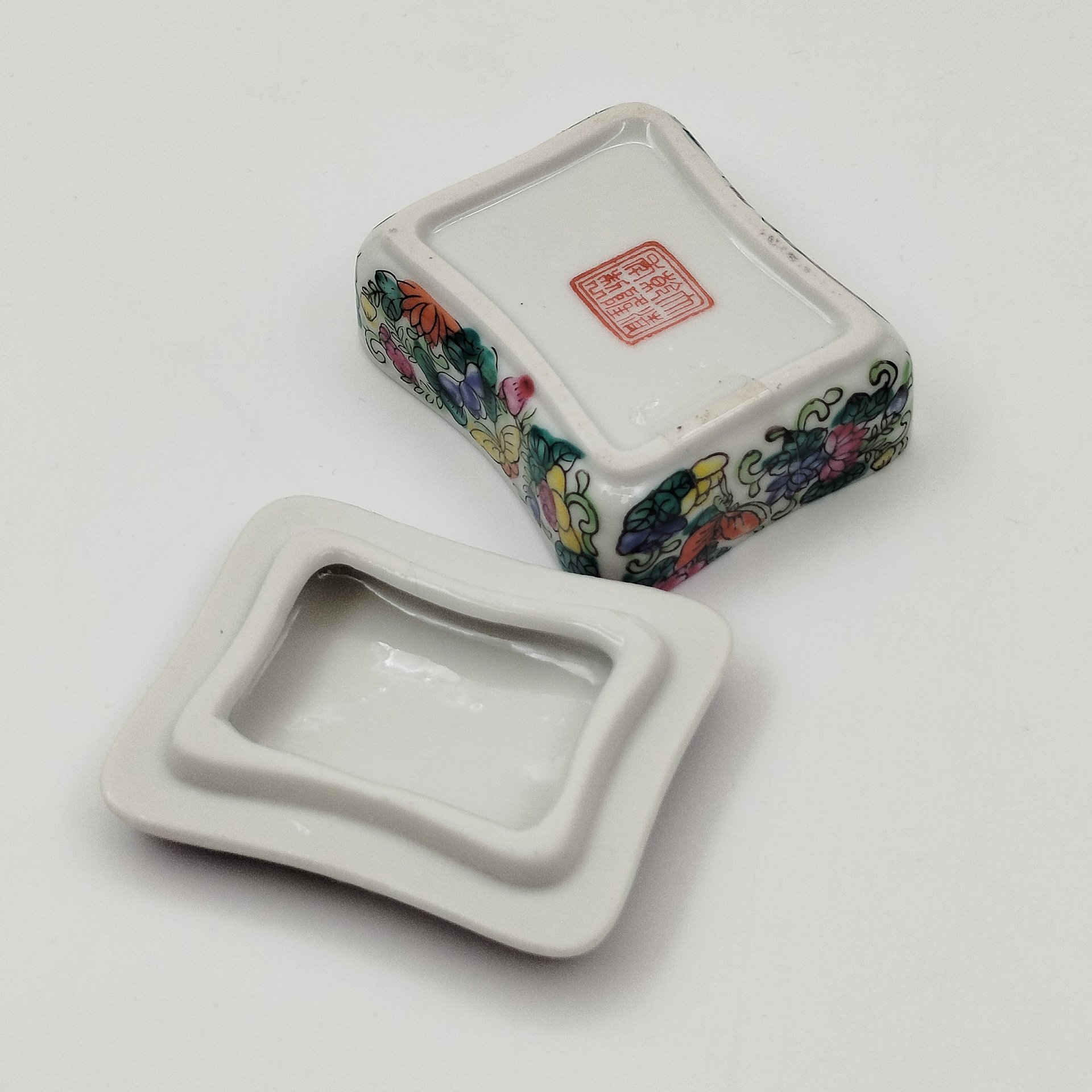 Купить Шкатулка с рельефным изображением сцены "шуан лун си чжу" в виде двух драконов, играющих с огненной жемчужиной, выполненная в стилистике эпохи Цин, фарфор, роспись, Китай, 1950-1970 гг.