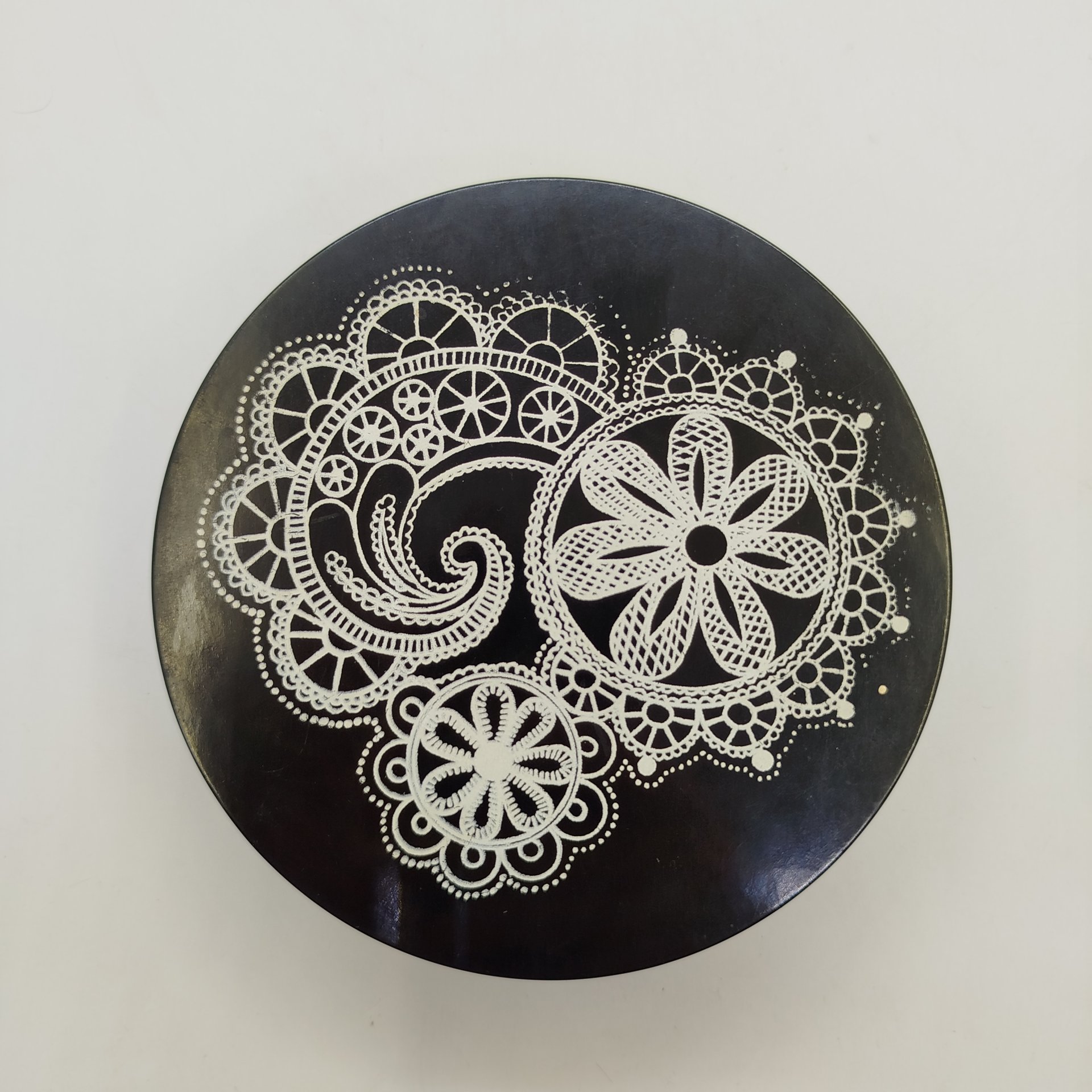 Шкатулка округлой формы с растительным декором, бакелит, деколь, СССР, 1970-1980 гг.