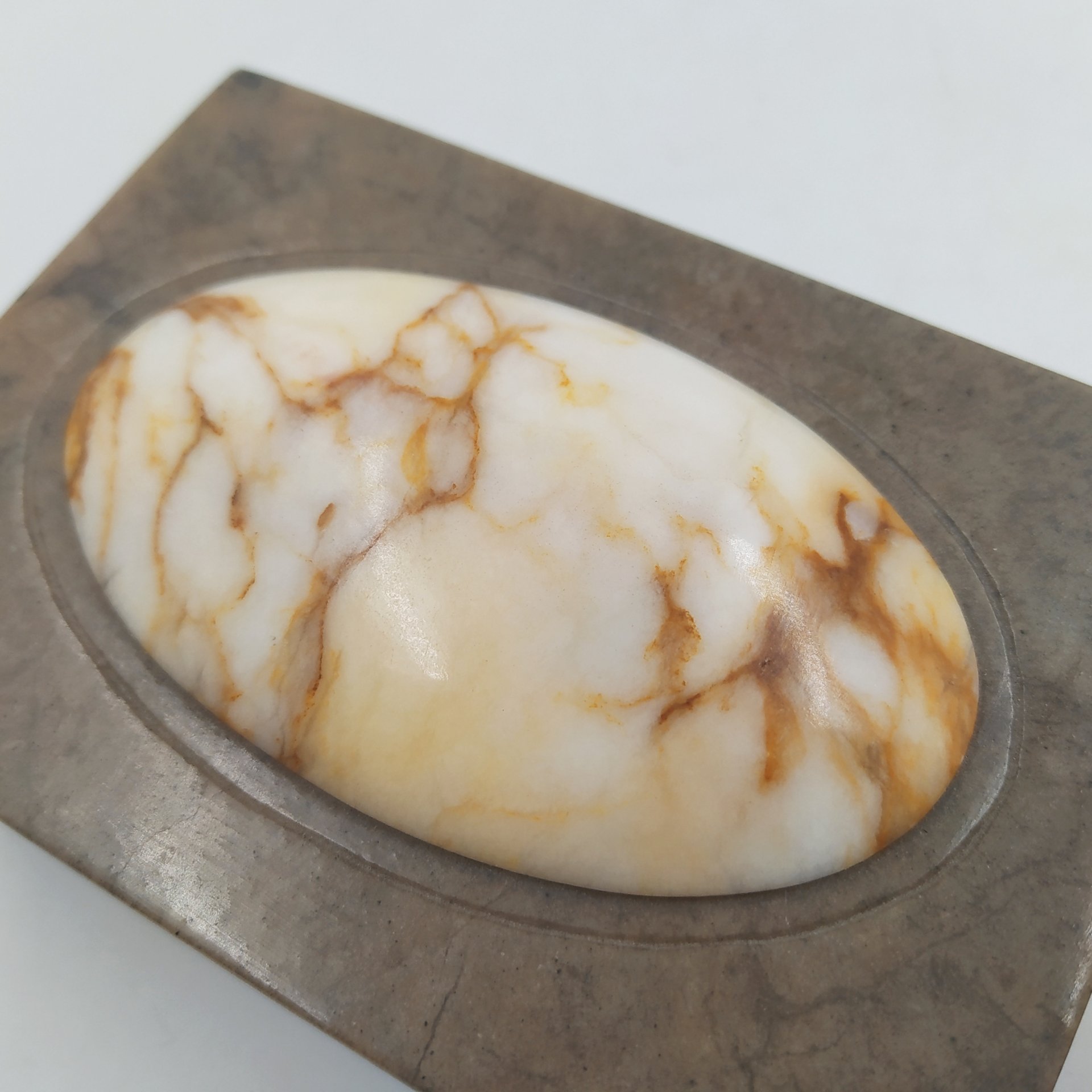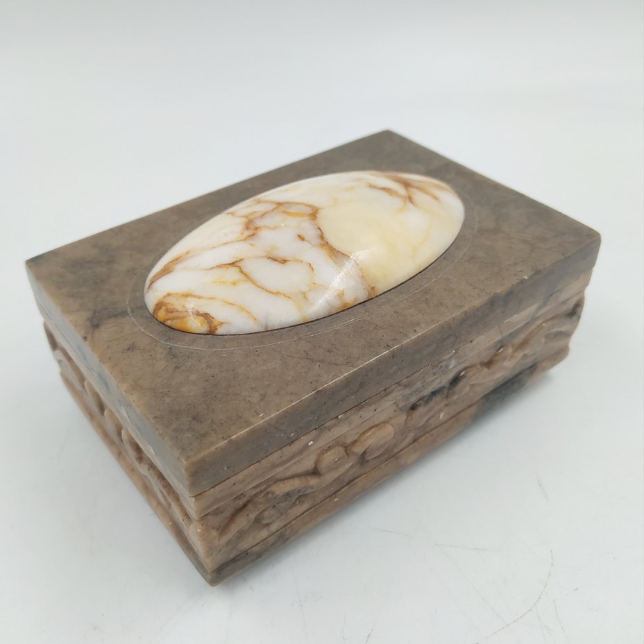 Шкатулка прямоугольной формы с овальной вставкой, натуральный камень, резьба, Россия, 1980-2000 гг.