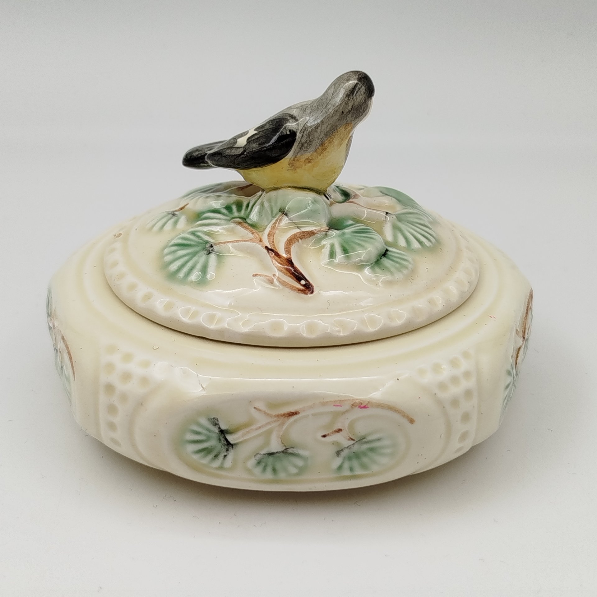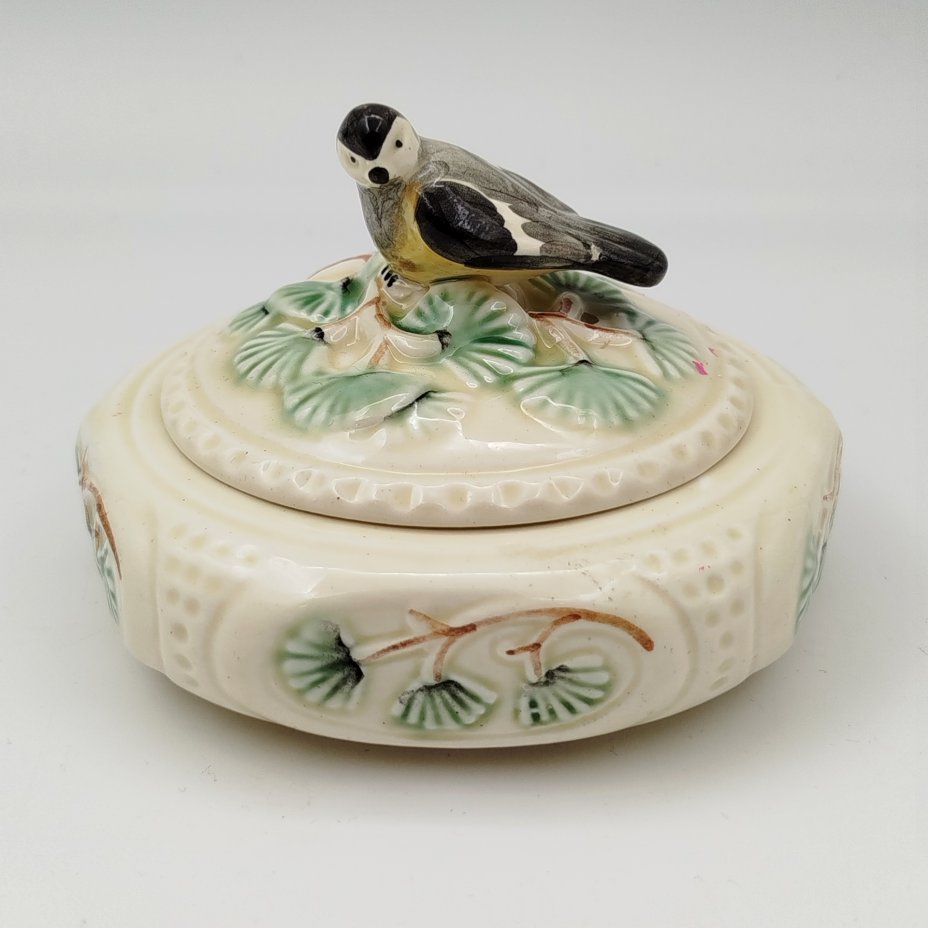Шкатулка "Синичка", фаянс, роспись, Конаковский фаянсовый завод им. М.И. Калинина (ЗиК Конаково), СССР, 1952-1958 гг.