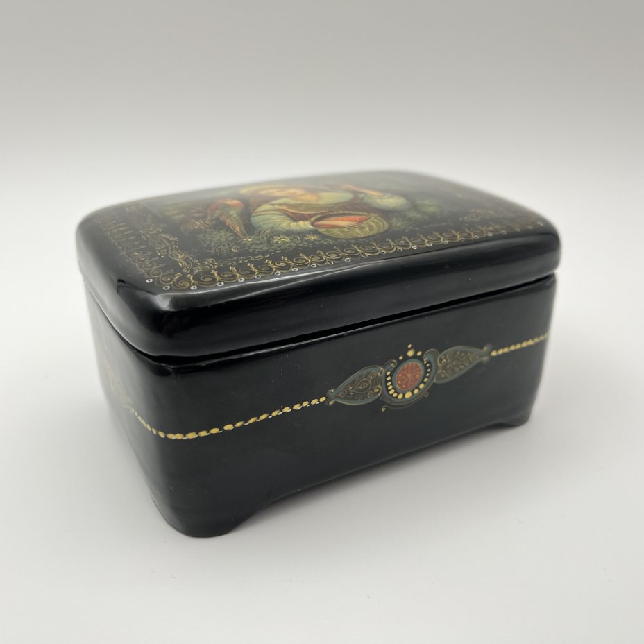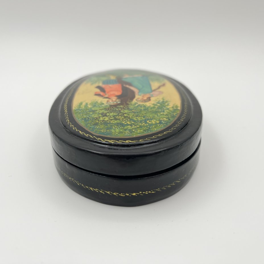 Шкатулка с лаковой миниатюрой "По малину", автор Е. Краснов, Палех, папье-маше, лак, роспись, Россия, 2010-2020 гг.