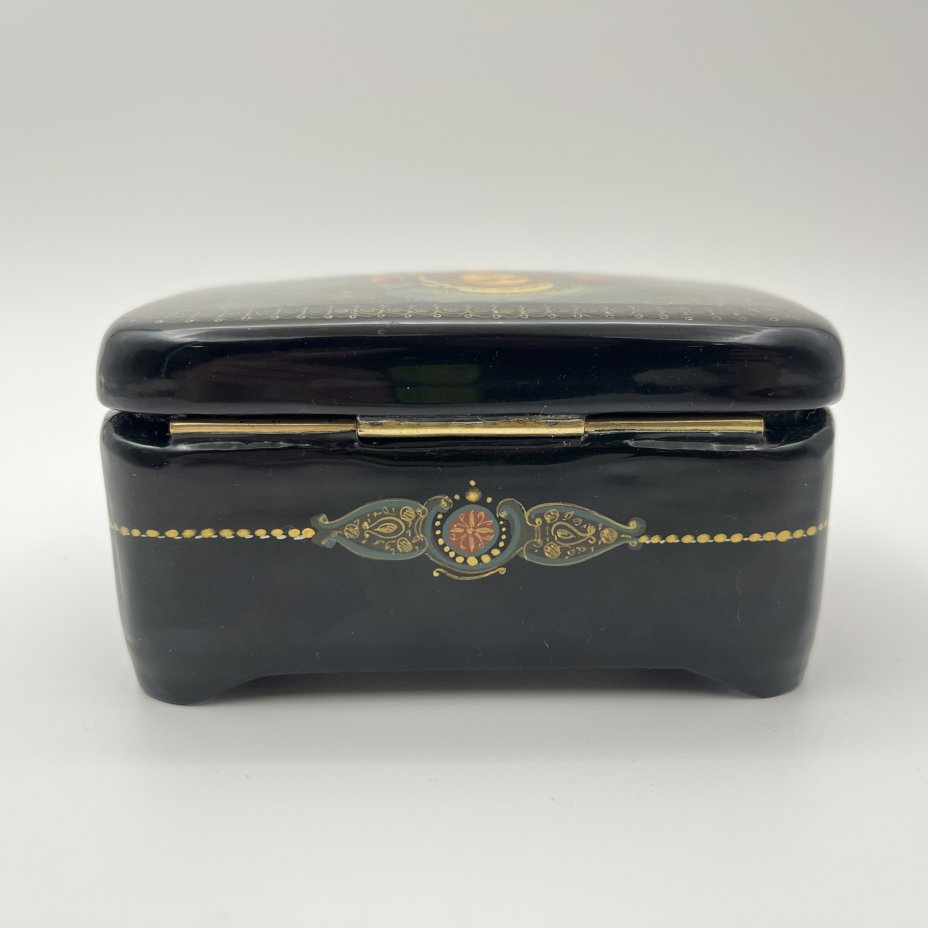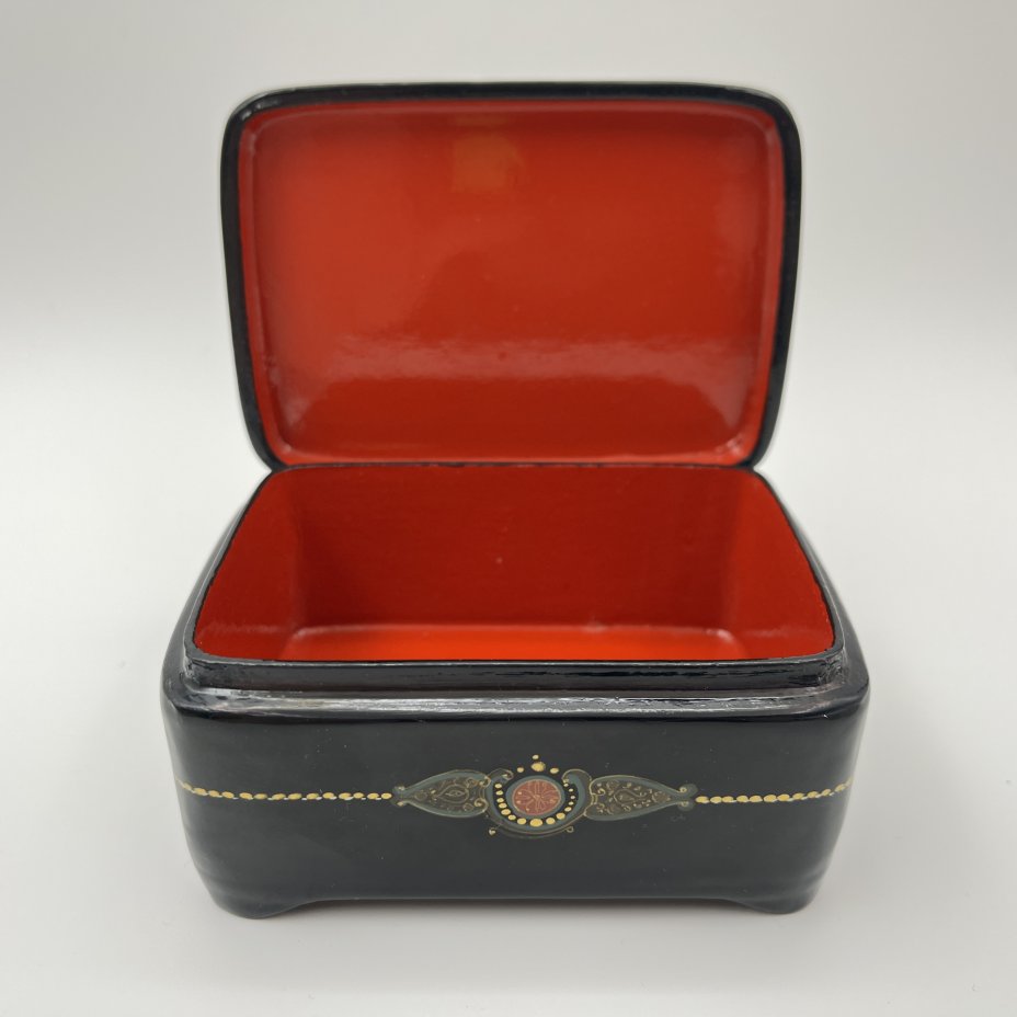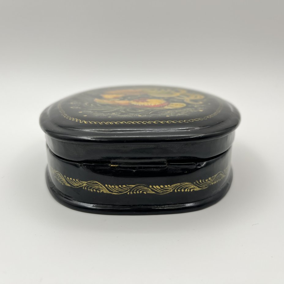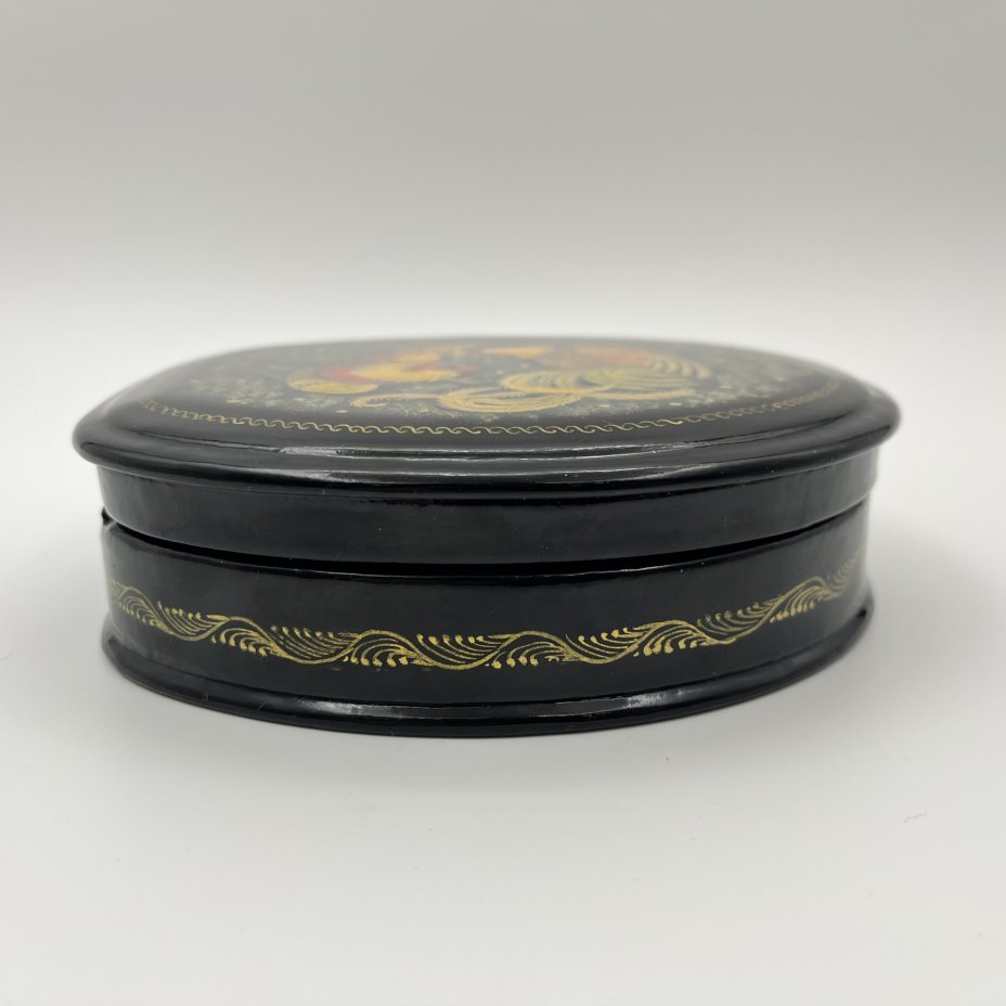 Шкатулка украшенная цветочным декором, п. Мстера, папье-маше, роспись, лак, СССР, 1950-1970 гг.