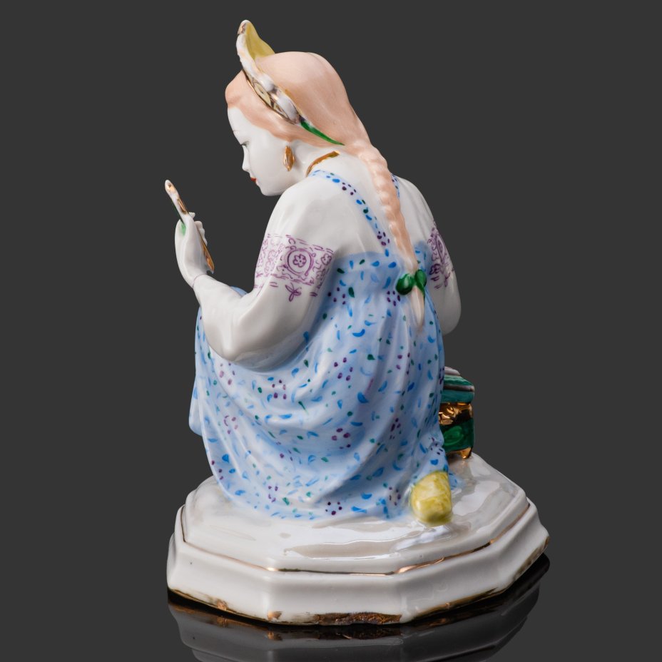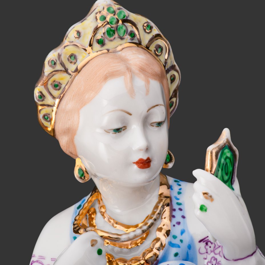 Статуэтка "Малахитовая шкатулка" ("Танюшка и тятино подаренье"), скульптор О.М. Богданова, фарфор, роспись, золочение, люстр, Ленинградский завод фарфоровых изделий (ЛЗФИ), СССР, 1956-1967 гг.
