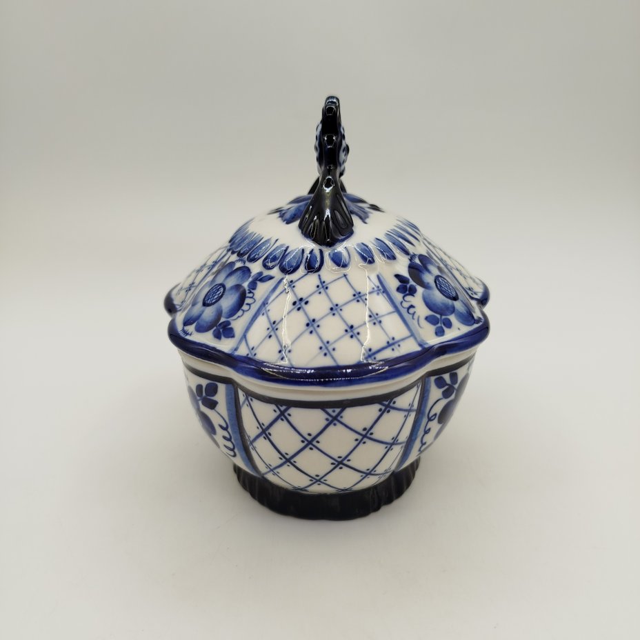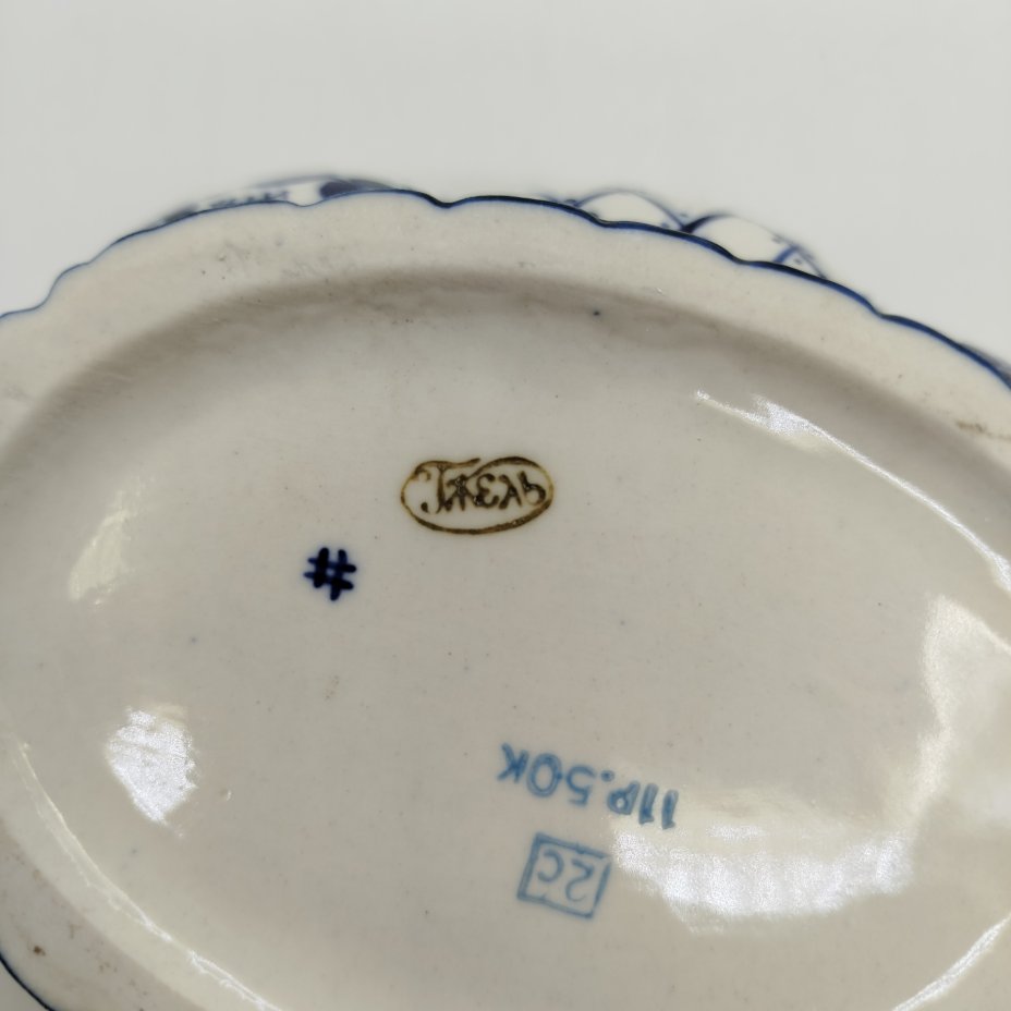 Шкатулка (конфетница) овальной формы с растительным декором, фарфор, роспись, Объединение «Гжель», СССР, 1972-1985 гг.