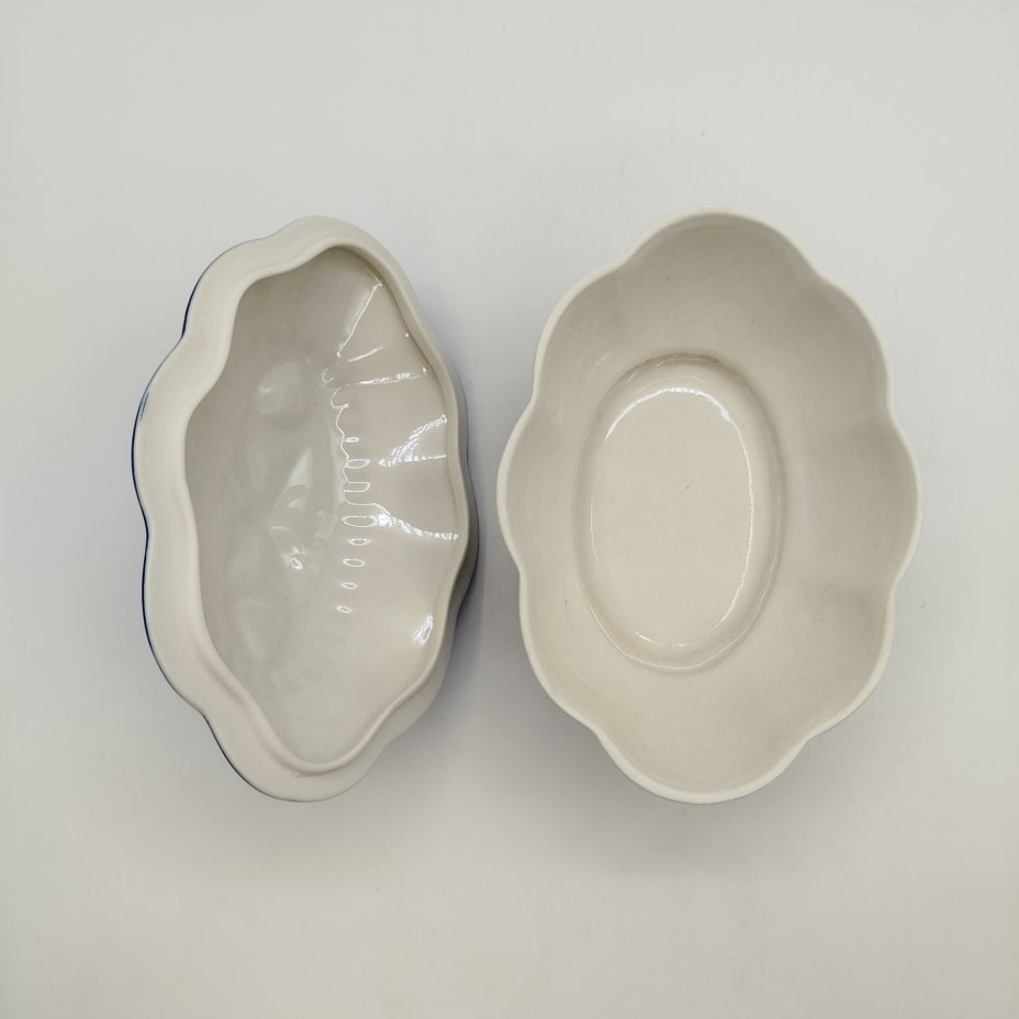 Шкатулка (конфетница) овальной формы с растительным декором, фарфор, роспись, Объединение «Гжель», 1986-1991 гг.