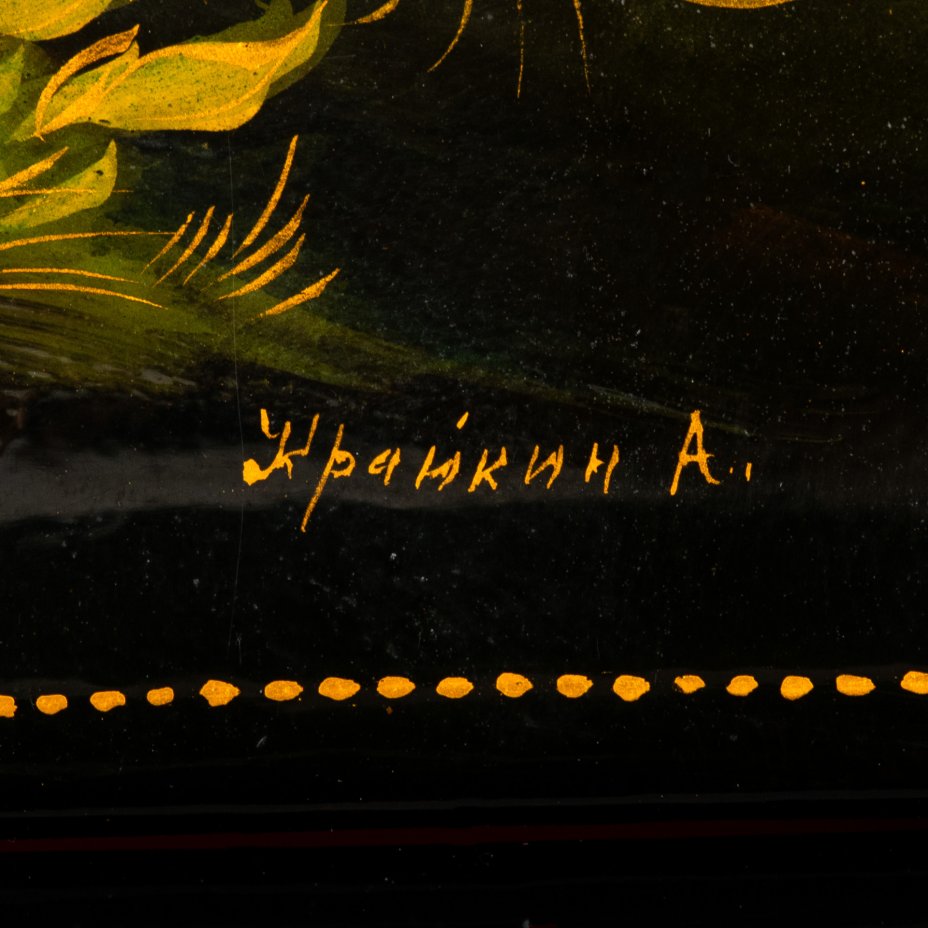 Шкатулка с цветочным декором, папье-маше, роспись, подпись автора "Л.З.", Мстера, СССР, 1950-1970 гг.