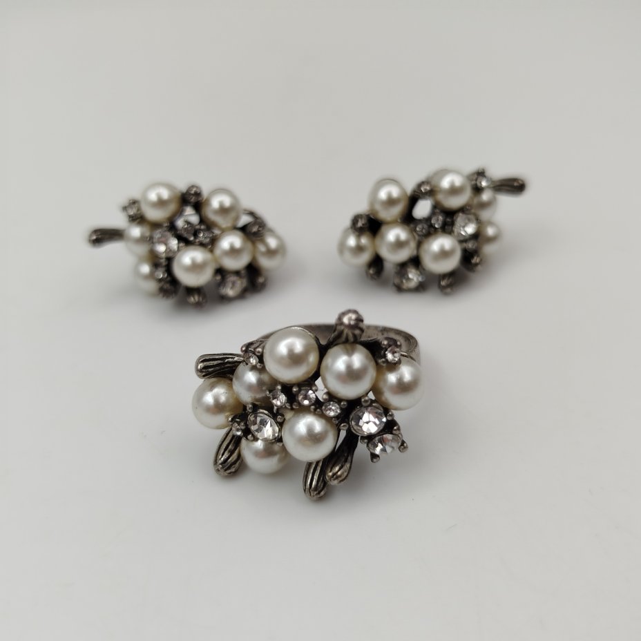 - Материал: Металл, имитация жемчуга, вставки прозрачного цвета