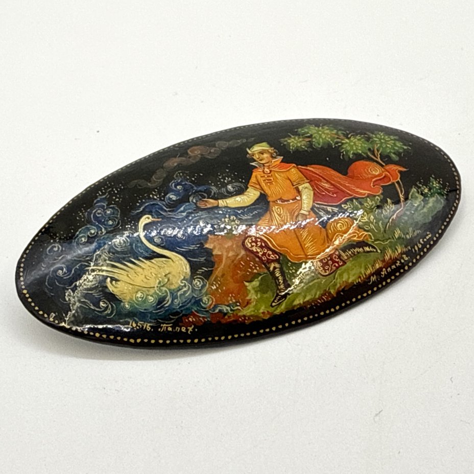 Брошь "Царевна-Лебедь", автор М. Апаков, папье-маше, роспись, лак, Палех, Россия, 1965 г.