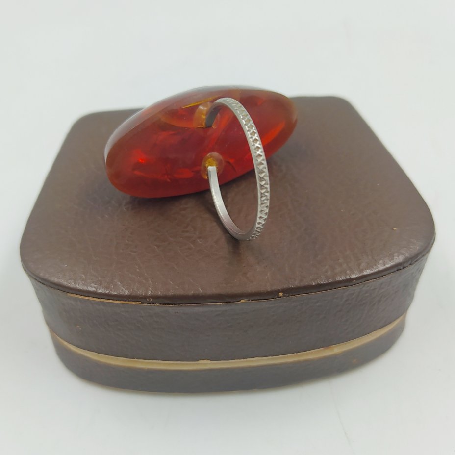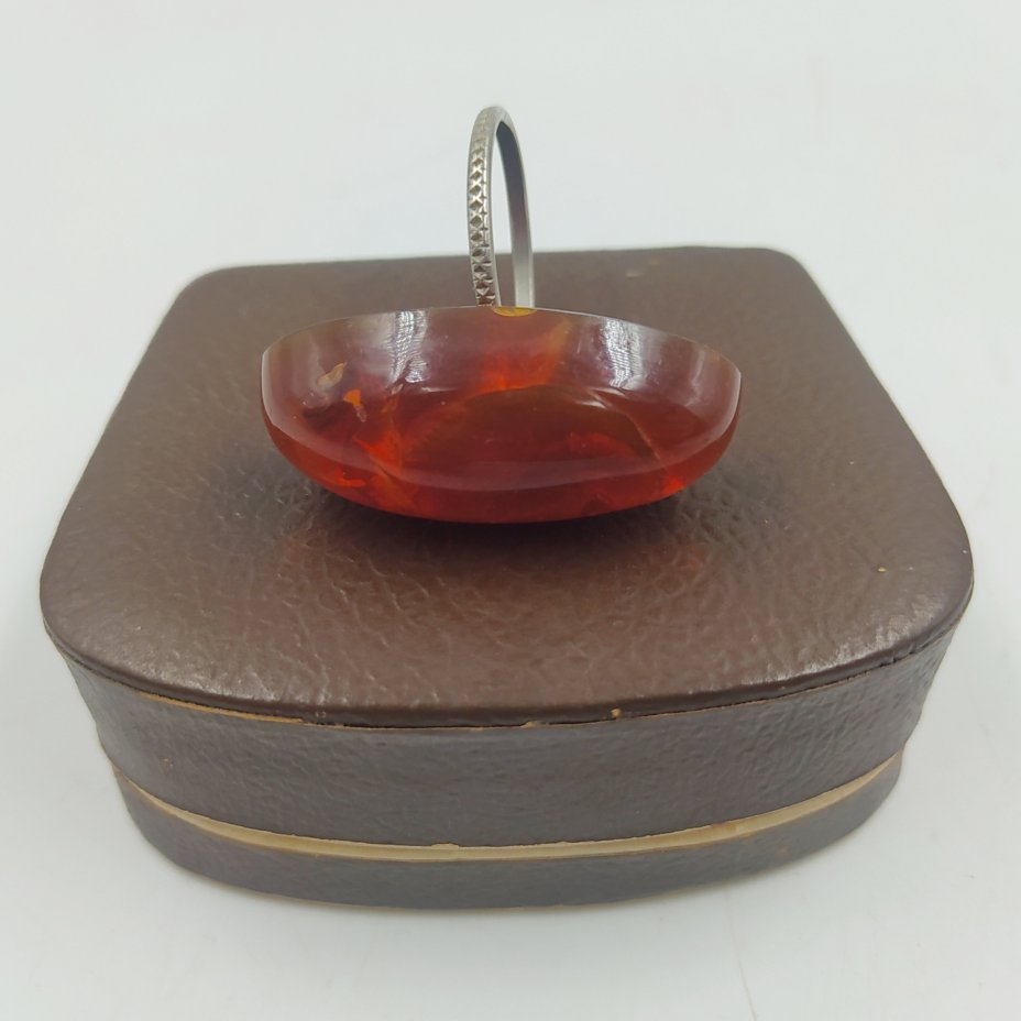 Кольцо винтажное с миндалевидной вставкой (в футляре), металл, янтарь, СССР, 1970-1990 гг.