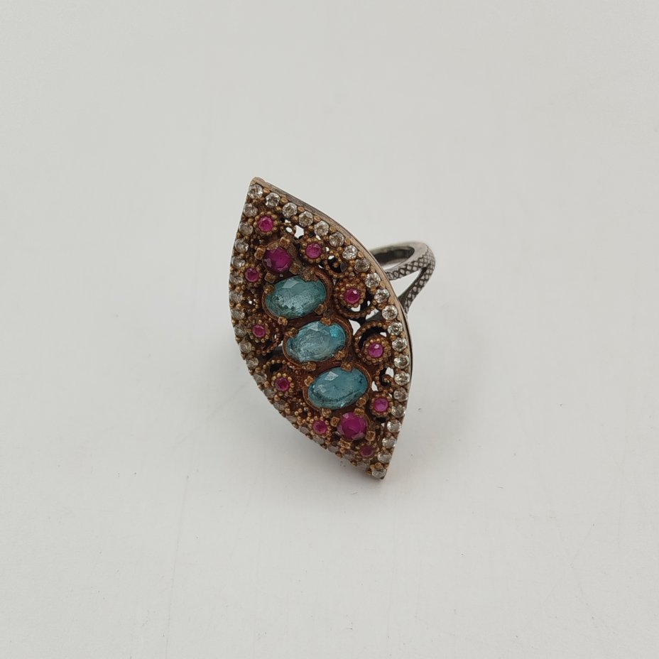 Кольцо формы "Маркиза", металл, вставки - синтетический рубин, фианиты и ювелирное стекло, Западная Европа, 1890-1920 гг.