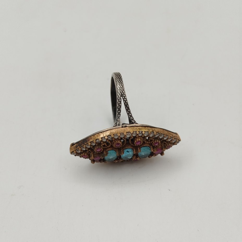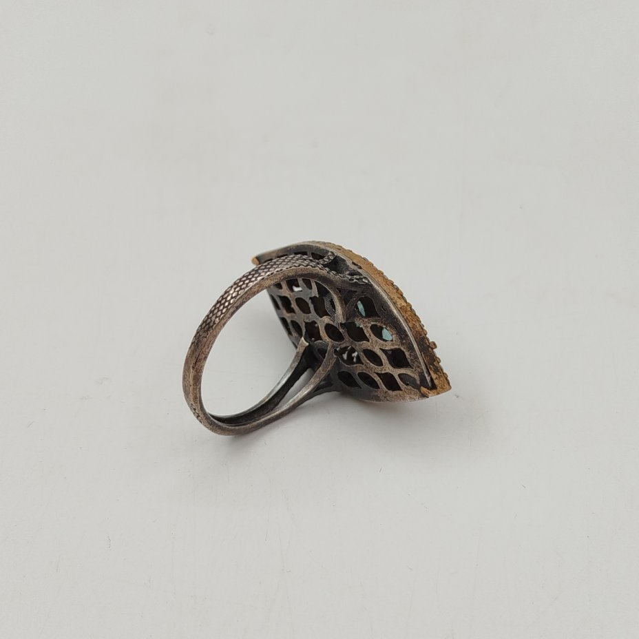 Кольцо/перстень с флоральным декором и вставкой бирюзового оттенка, металл, композитный материал, СССР, 1970-1990 гг.